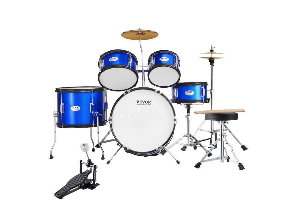 Detská bicie súprava 5-dielna, 16 in, basový bubon, paličky, modrá