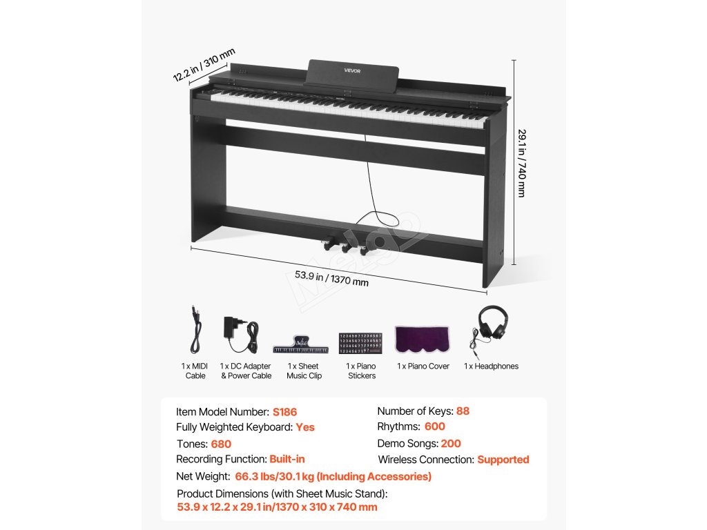 Digitálne piano 88 kláves, plne vyvážené, 680 tónov, stojan, slúchadlá