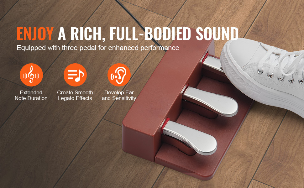 Pedál sustain, ktorý sa dodáva s týmto váženým klavírom, pomáha predĺžiť trvanie nôt, vytvoriť legato efekty a urobiť celkový zvuk plnším a trojrozmernejším. To pomáha cvičiacim rozvíjať ich hudobný sluch a citlivosť.