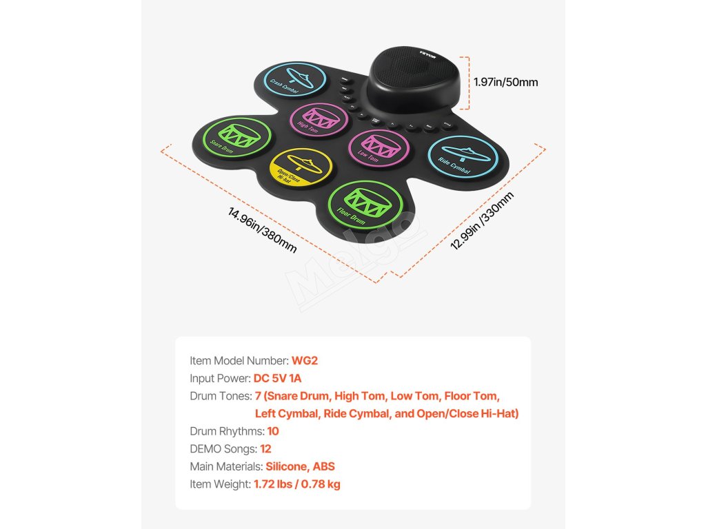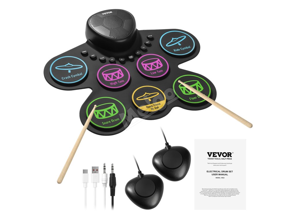 Elektronické bicie, 7 padov, roll-up cvičný pad, so slúchadlami
