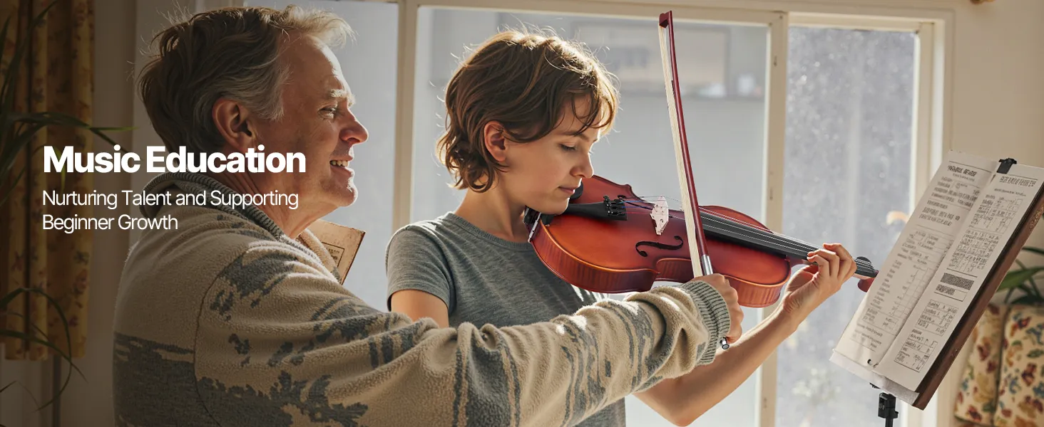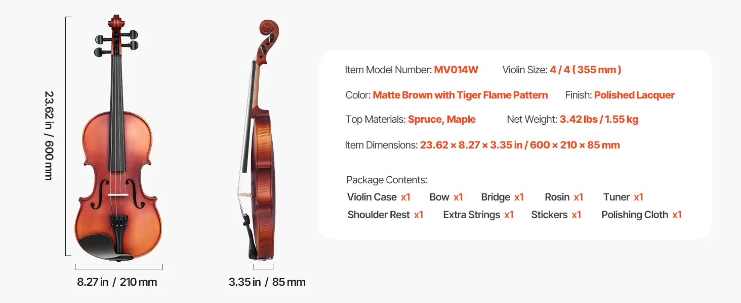 Husle 4/4 355mm masívne drevo pre začiatočníkov matné hnedé vzorované