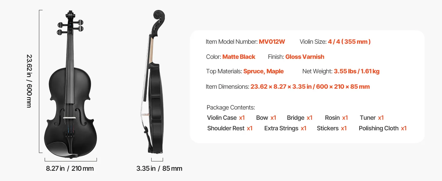 Husle 4/4 pre začiatočníkov, masívne drevo, puzdro, kolofónia, čierne