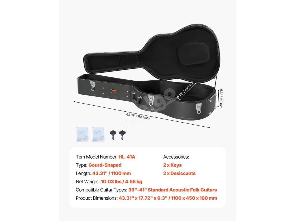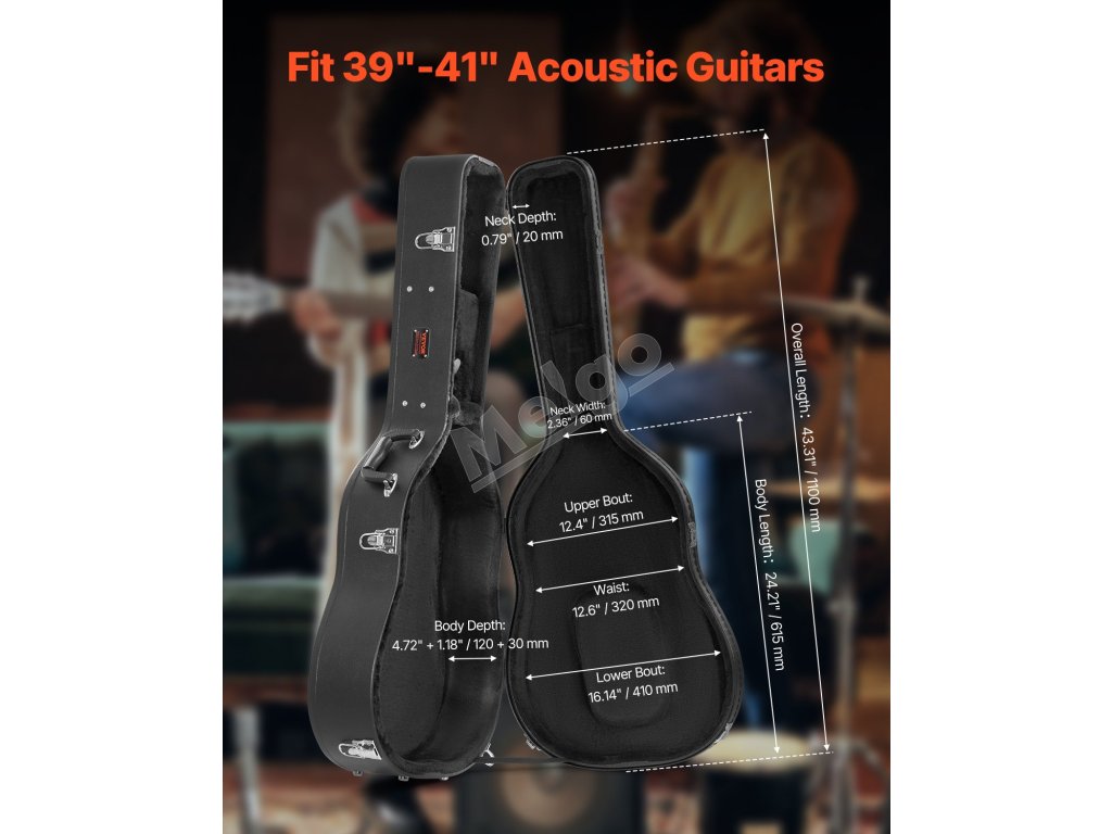 Pevné púzdro na akustickú gitaru 43.31 in / 110 cm s zámkom a kľúčmi