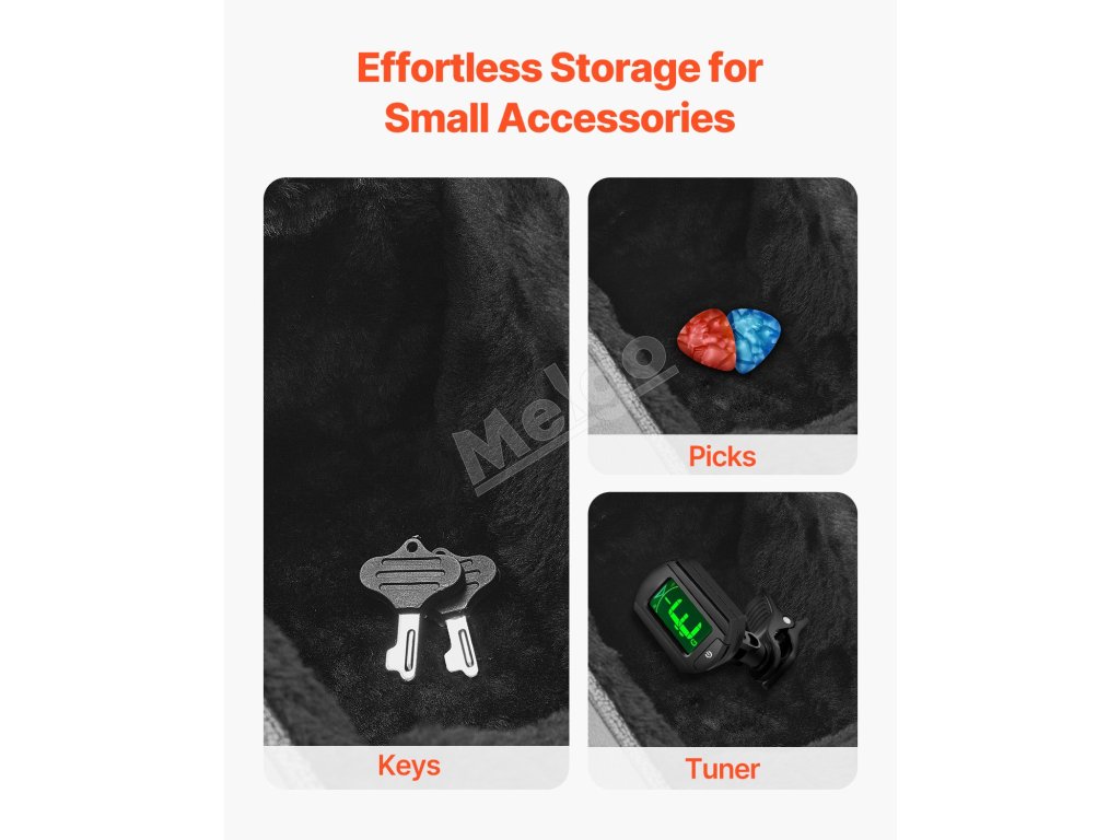 Na rozdiel od tradičných obdĺžnikových tvrdých puzdier na gitaru má náš model štýlový dizajn v tvare tekvice. Vďaka hladkým líniám a elegantnému vzhľadu výrazne ladí s modernou estetikou, vďaka čomu vaša gitara vynikne sofistikovanosťou.