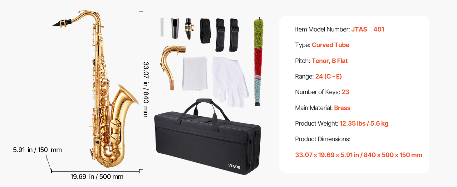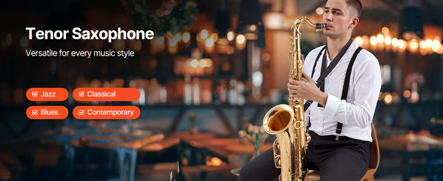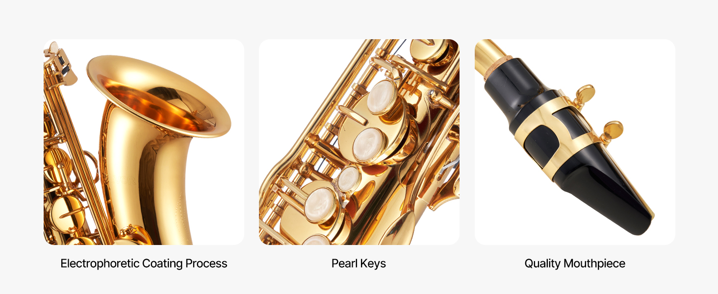 Tento tenor saxofón s rozsahom 24 tónov (C - E) a 23 klávesmi poskytuje bohatý, hlboký tón ideálny pre všetky nástroje od klasických swingových a jazzových súborov až po sólové vystúpenia. Vyrobený z odolnej mosadze s elektroforetickou povrchovou úpravou a elegantnými mušľovými klávesmi poskytuje čistý a stabilný tón.
