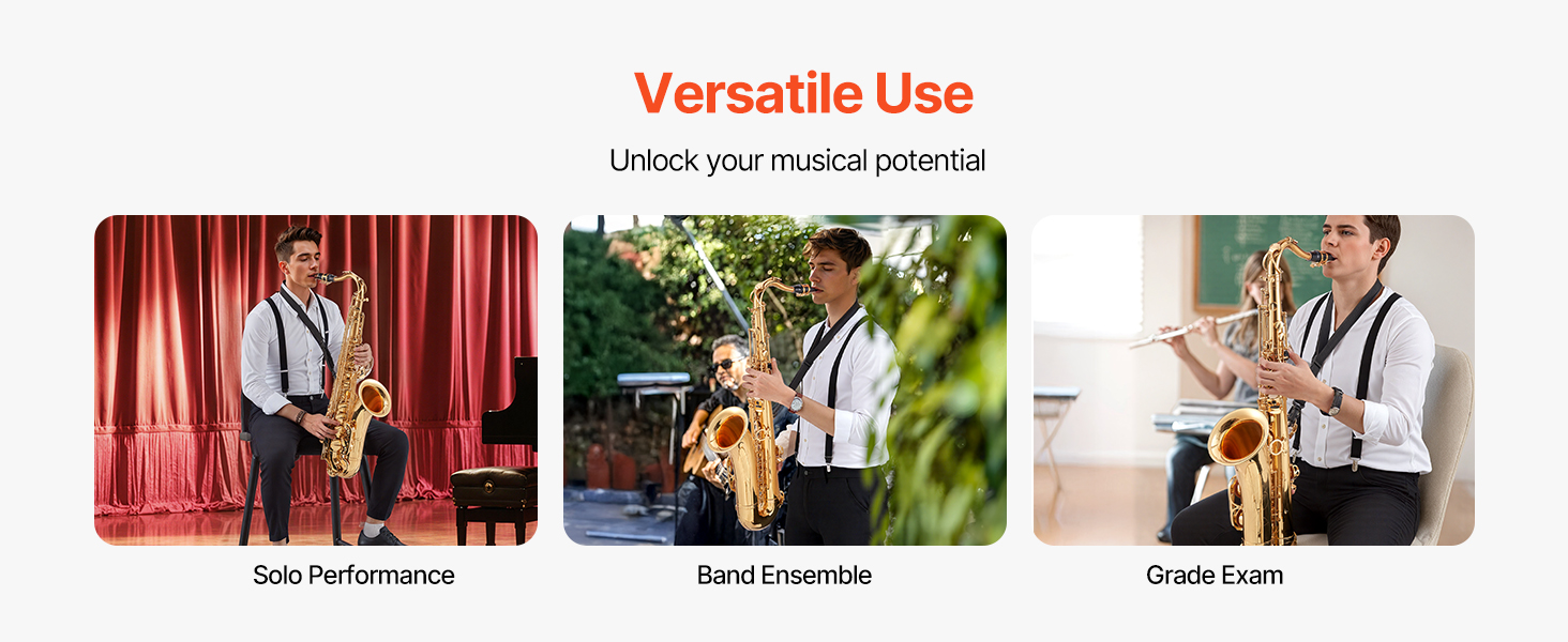 Či už vystupujete sólovo, hráte v súbore alebo sa pripravujete na skúšku, tento študentský saxofón pre začiatočníkov poskytuje stabilný tón, hladkú odozvu a bohatý, detailný zvuk. Je dobrou voľbou pre hudobníkov všetkých úrovní.