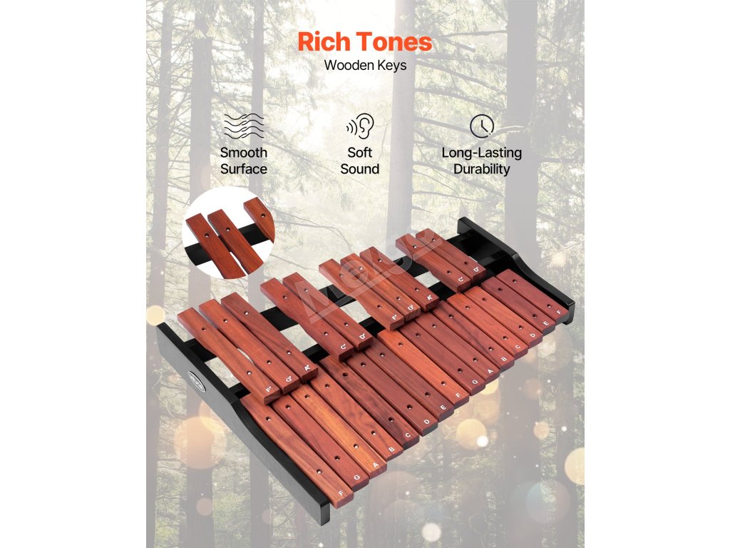 Vďaka základni z prírodného dreva a dreveným klávesom je tento zvonkoherný nástroj vizuálne príťažlivý a zvukovo príjemný pre milovníkov hudby všetkých vekových kategórií. Je vhodná na počiatočné hudobné vzdelávanie, školské kapely alebo aj na profesionálne vystúpenia.