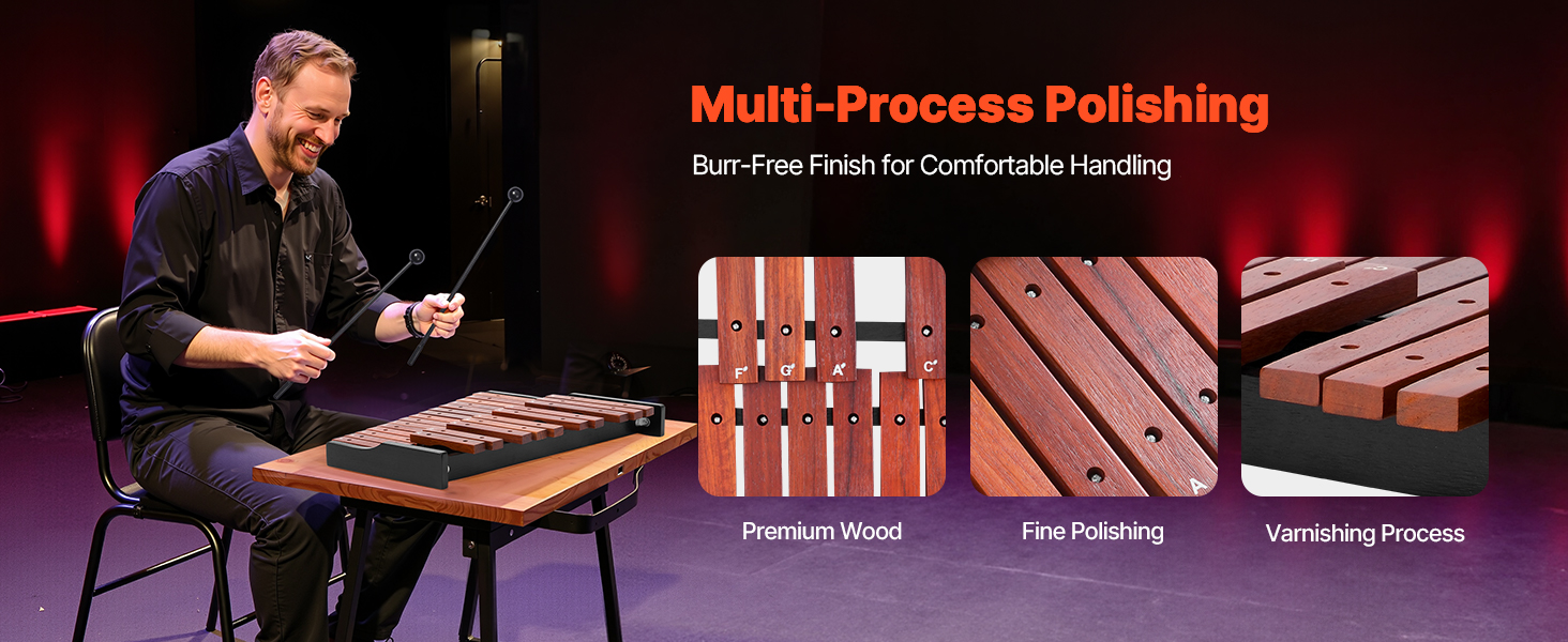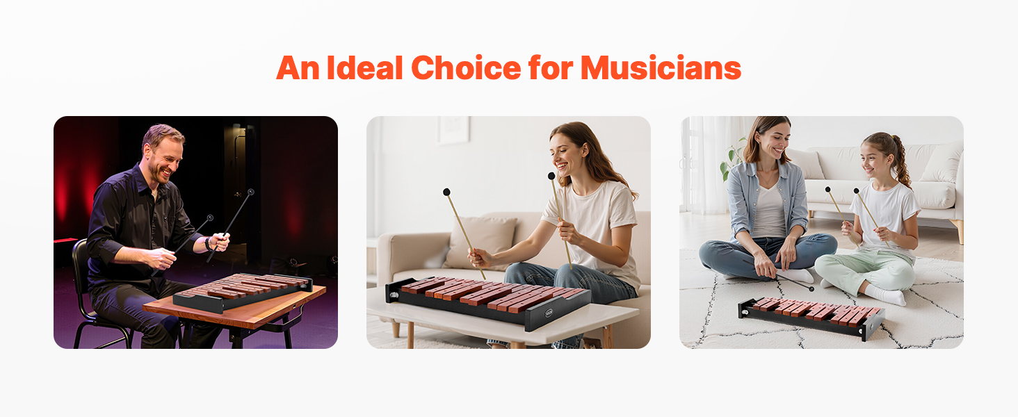 Tento profesionálny xylofónový nástroj vyrobený s klávesmi z nízkouhlíkovej ocele SPCC poskytuje jasné, čisté tóny s bohatými podtónmi a stabilnou výškou. Každý kľúč je pred opustením továrne odborne naladený, aby sa zabezpečil presný zvuk - dokonca aj v súboroch alebo po dlhodobom používaní.