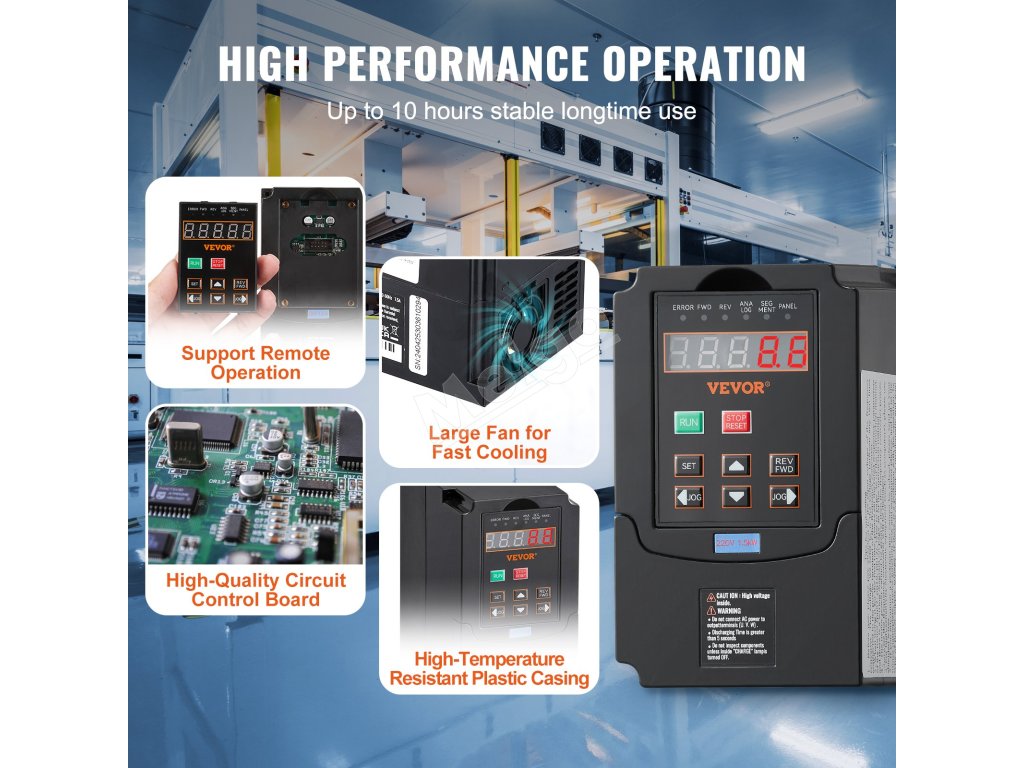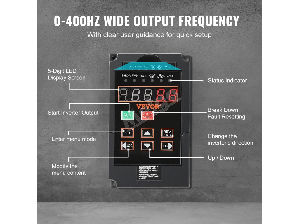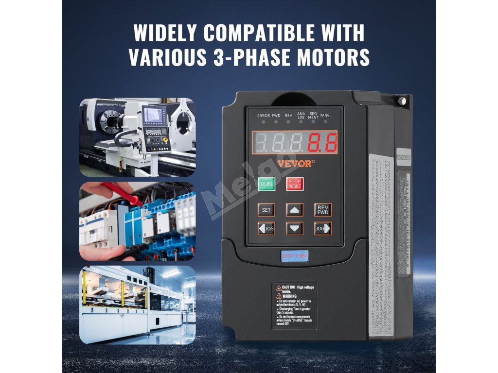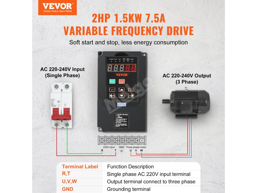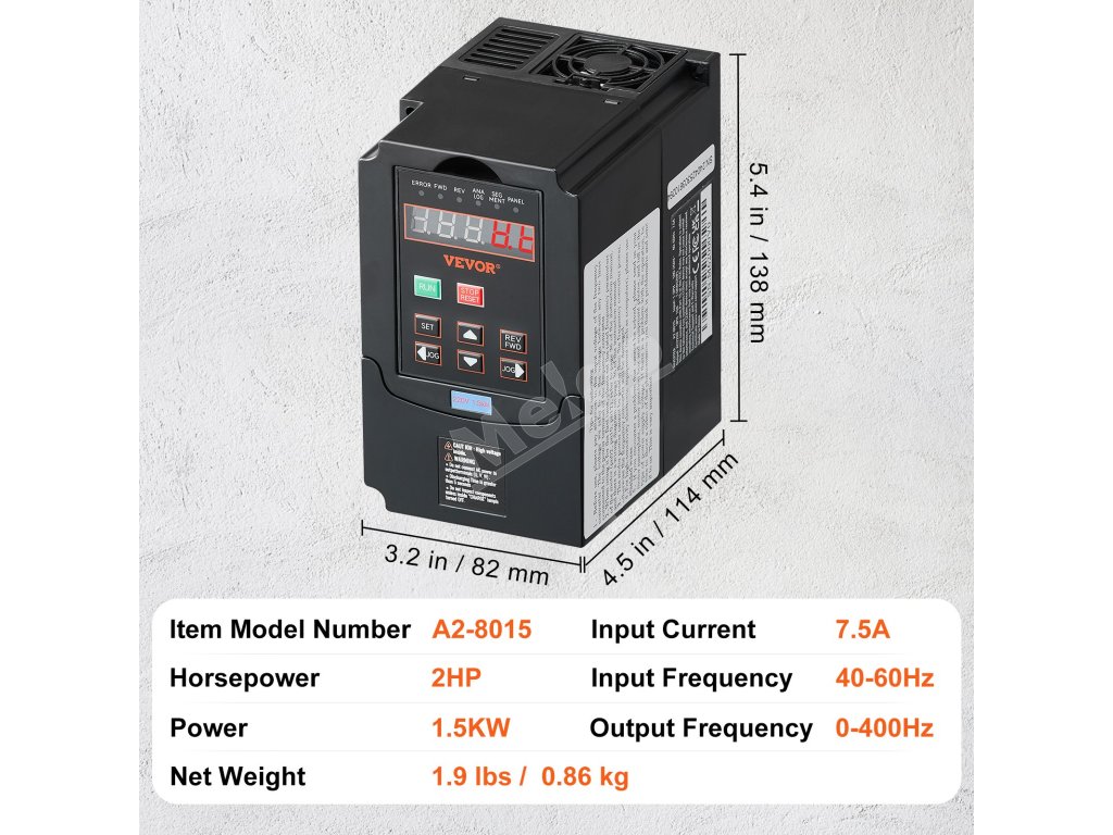 Meniteľ frekvencie 1,5 kW (2 HP), 7,5 A, 220 V vstup/výstup 0–400 Hz