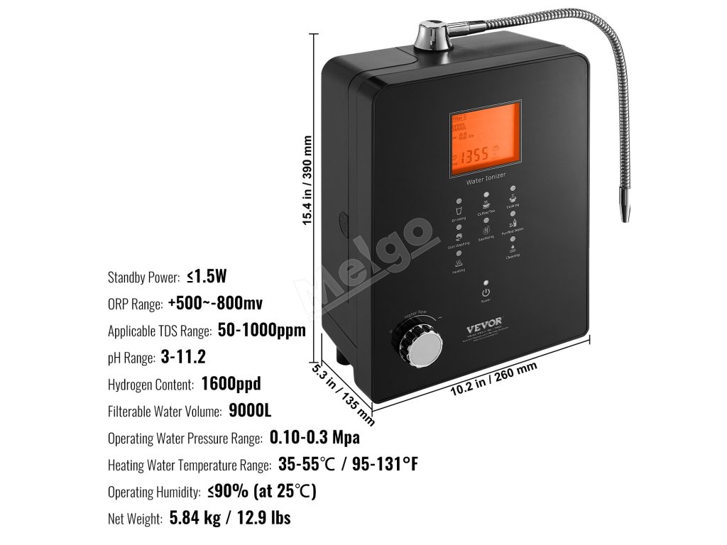 Ionizátor vody, pH 3–11,2, 6 režimov, -800mV ORP, 9000L, UV, ohrev