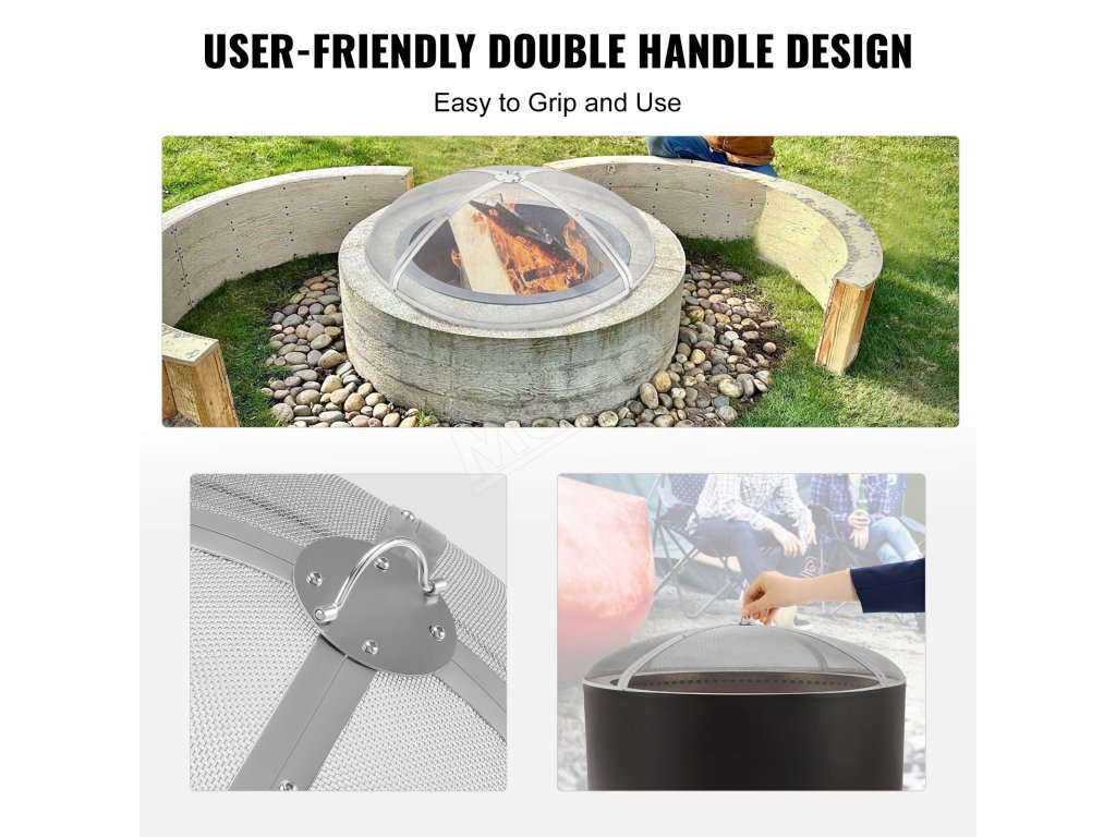 S hornou rukoväťou na jednoduché zdvíhanie a prenášanie krytu ohniska. Umožňuje vám ho bez námahy zdvihnúť na založenie ohňa alebo prepravu. Keď oheň horí, môžete použiť kliešte na odstránenie krytu.