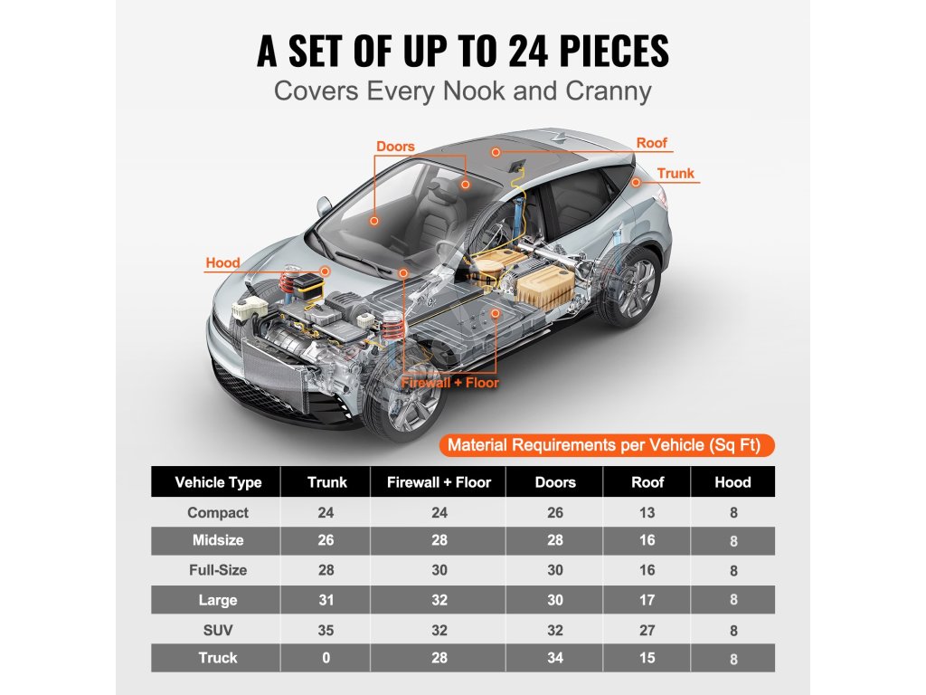 Táto zvukovoizolačná rohož je veľmi univerzálna a spĺňa požiadavky rôznych častí vášho vozidla, ako sú napríklad požiarna stena, podlaha, kapota, výplne dverí a ďalšie. K dispozícii sú jasné pokyny pre oblasť pokrytia, aby bol výber a inštalácia bezproblémové.
