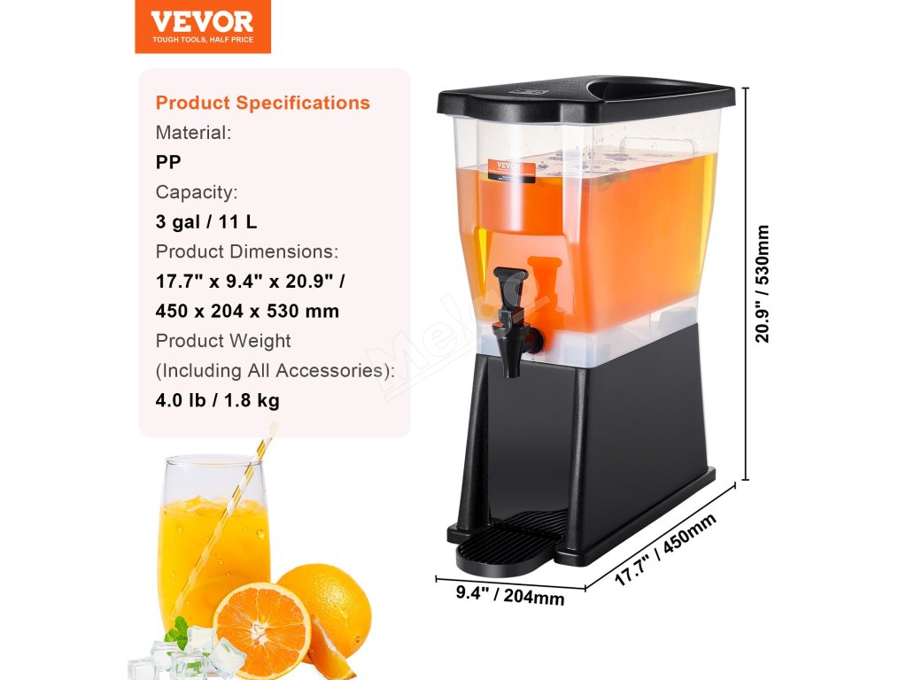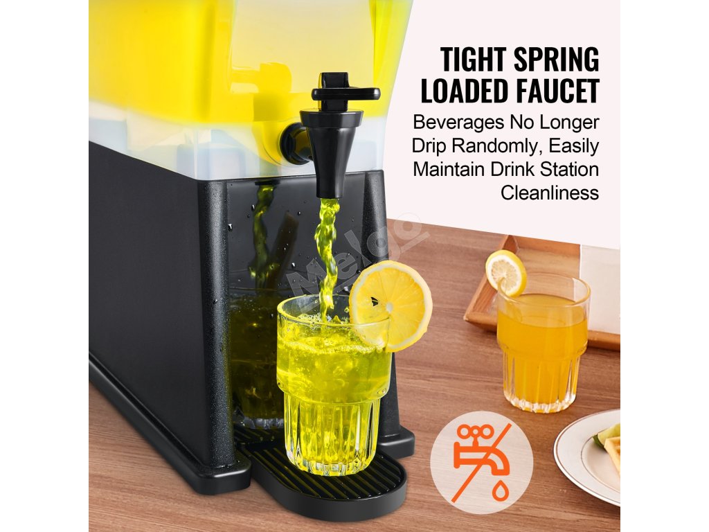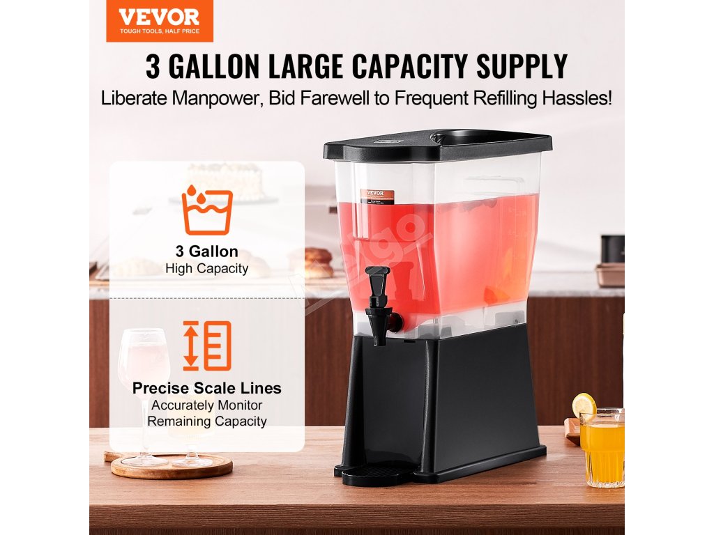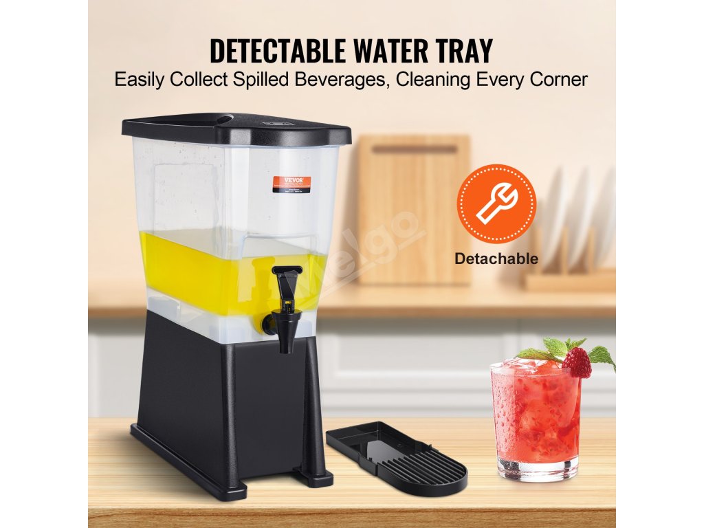 S kapacitou až 3 galóny slúži tento dávkovač nápojov ako spoľahlivý pomocník pre vaše rušné reštaurácie, hotely a stretnutia! Rozlúčte sa s problémami s častým dopĺňaním, pretože náš veľkokapacitný dávkovač zabezpečuje stály prísun nápojov.