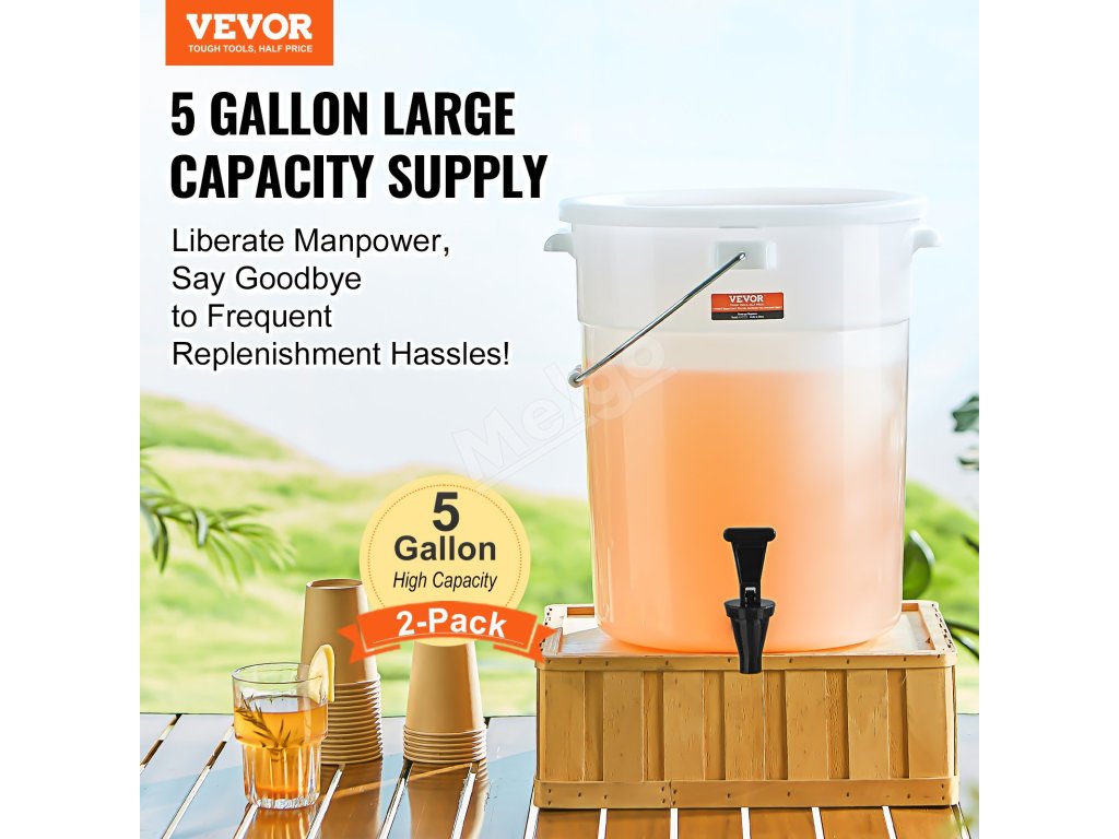 Dávkovač nápojov 5 gallon plastový s kohútikom a viečkom, 2 pack