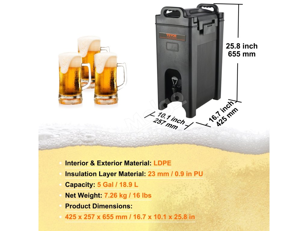 Izolovaný dávkovač nápojov 18.9 L, ldpe, 2.3 cm pu, dvojstupňový kohút