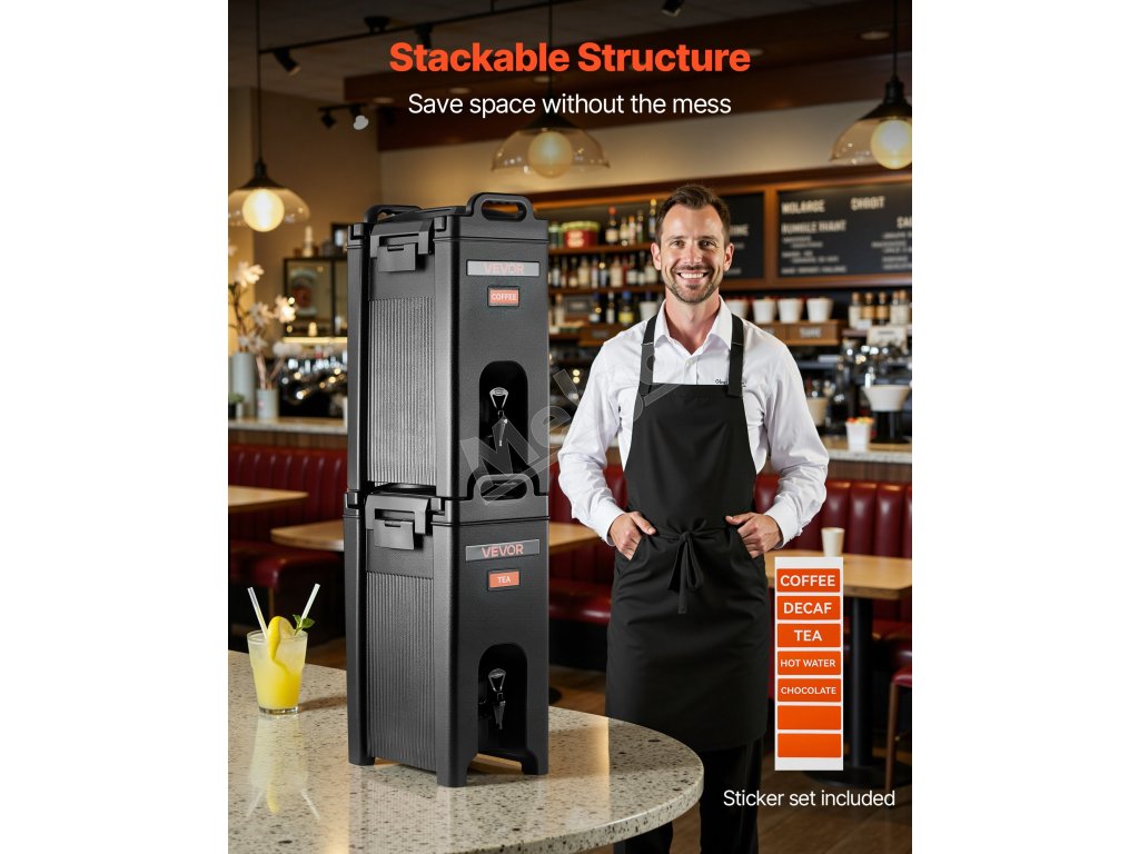 Tento izolovaný nápojový automat ponúka veľkú kapacitu na nepretržité podávanie horúcich alebo studených nápojov, čím spĺňa požiadavky kaviarní, reštaurácií, bufetov, vonkajších podujatí a ďalších zariadení.