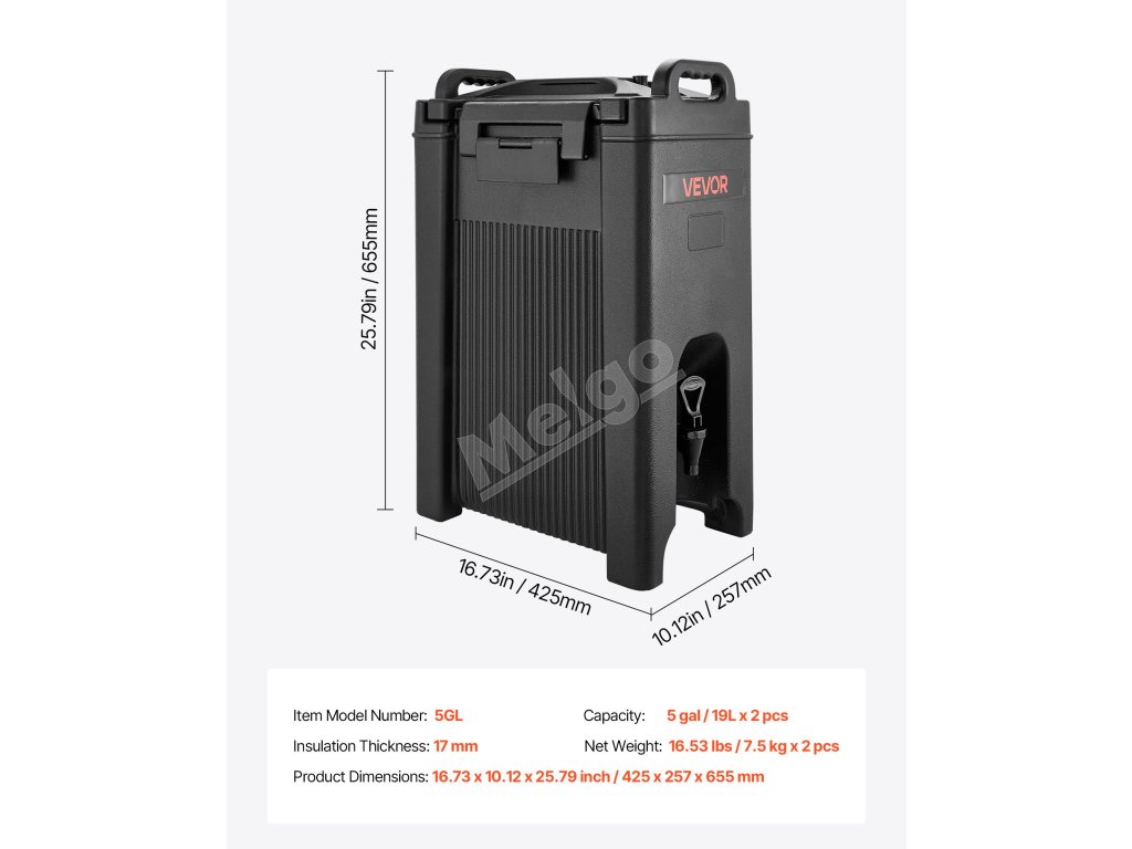 Izolovaný dávkovač nápojov 19 l (5 gal) s kohútikom a rukoväťou