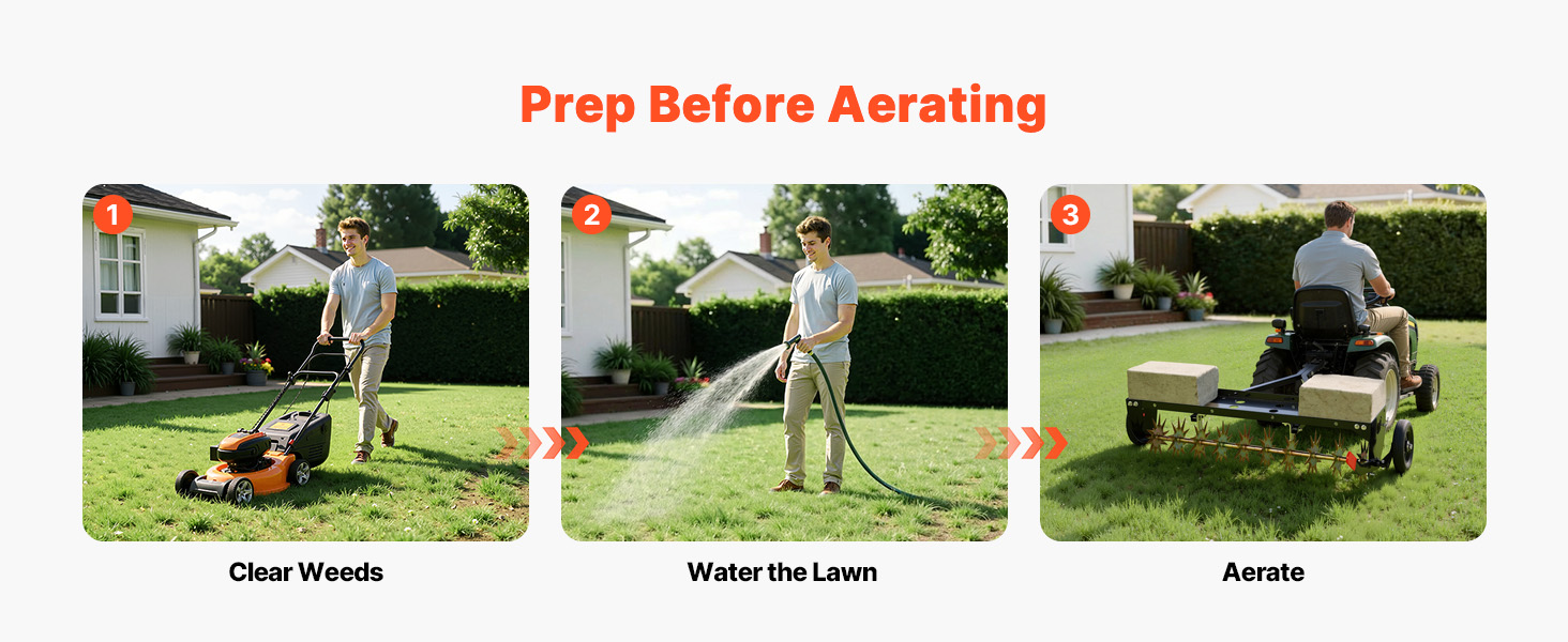 Pre optimálny výkon najprv odstráňte burinu, trávnik ľahko polievajte, aby sa pôda zmäkčila, a potom vykonajte hlboké prevzdušňovanie. Tento ťahaný prevzdušňovač umožňuje hrotom ľahšie preniknúť, vytiahnuť čistejšie zátky pôdy a zlepšiť absorpciu hnojiva, čím pomáha vášmu trávniku rýchlejšie zazelenieť a zhustnúť.