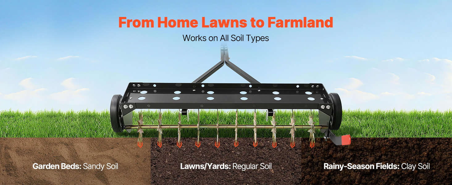 Nech už máte do činenia s piesčitou pôdou, bežnou záhradnou pôdou alebo ťažkou ílovitou pôdou zhutnenou po daždivom období, tento ťahaný aerátor zabezpečuje stabilné a hlboké preniknutie. Ťahaný aerátor s hrotmi je ideálny pre trávniky v rezidenčných oblastiach, ako aj pre farmy, zeleninové záhrady a veľké výsadbové plochy.