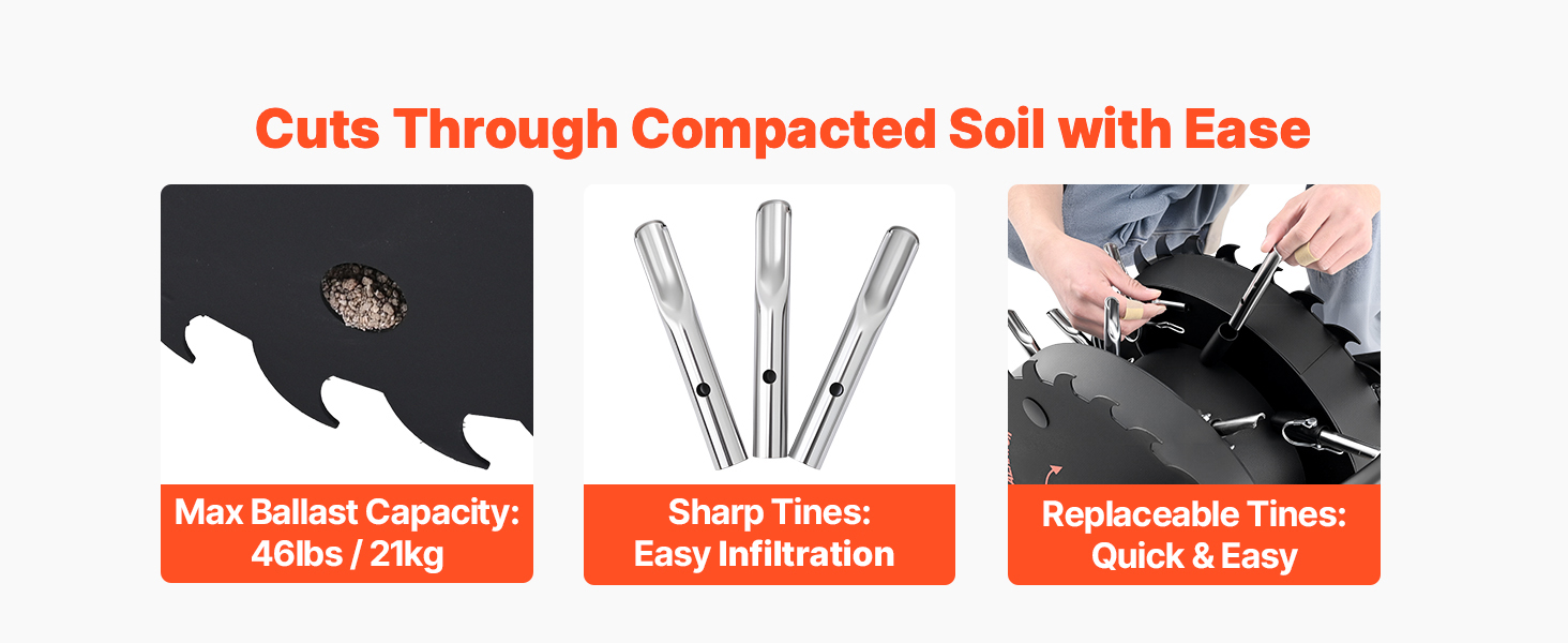 Náš valcový prevzdušňovač je vybavený 46-librovým závažím v kombinácii s uhlovými reznými hranami, ktoré ľahko preniknú aj do najtvrdšej zhutnenej pôdy. Rýchloupínacie hroty zjednodušujú údržbu a zvyšujú efektivitu, vďaka čomu pokryjete väčšiu plochu trávnika za kratší čas.