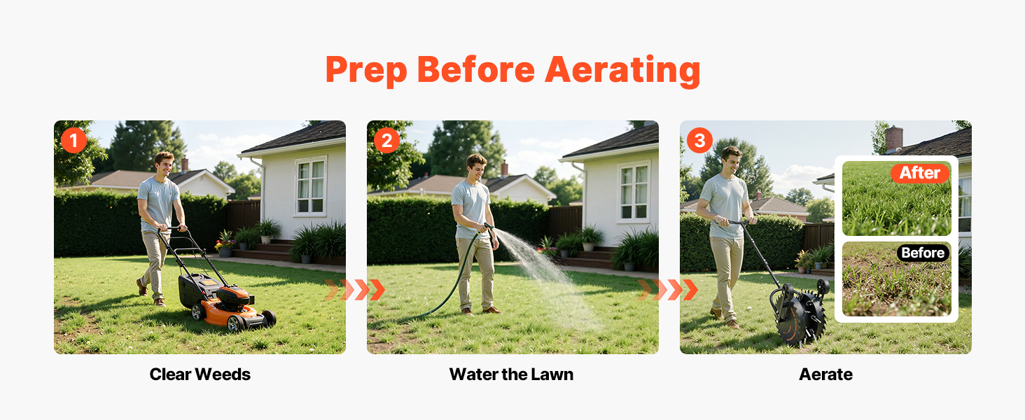 Pre optimálny výkon vopred odstráňte burinu a trávnik mierne zavlažte, aby bola pôda mierne vlhká. To umožňuje prevzdušňovaču ľahšie uvoľniť pôdu a dodávať vzduch a živiny hlbšie do koreňového systému.