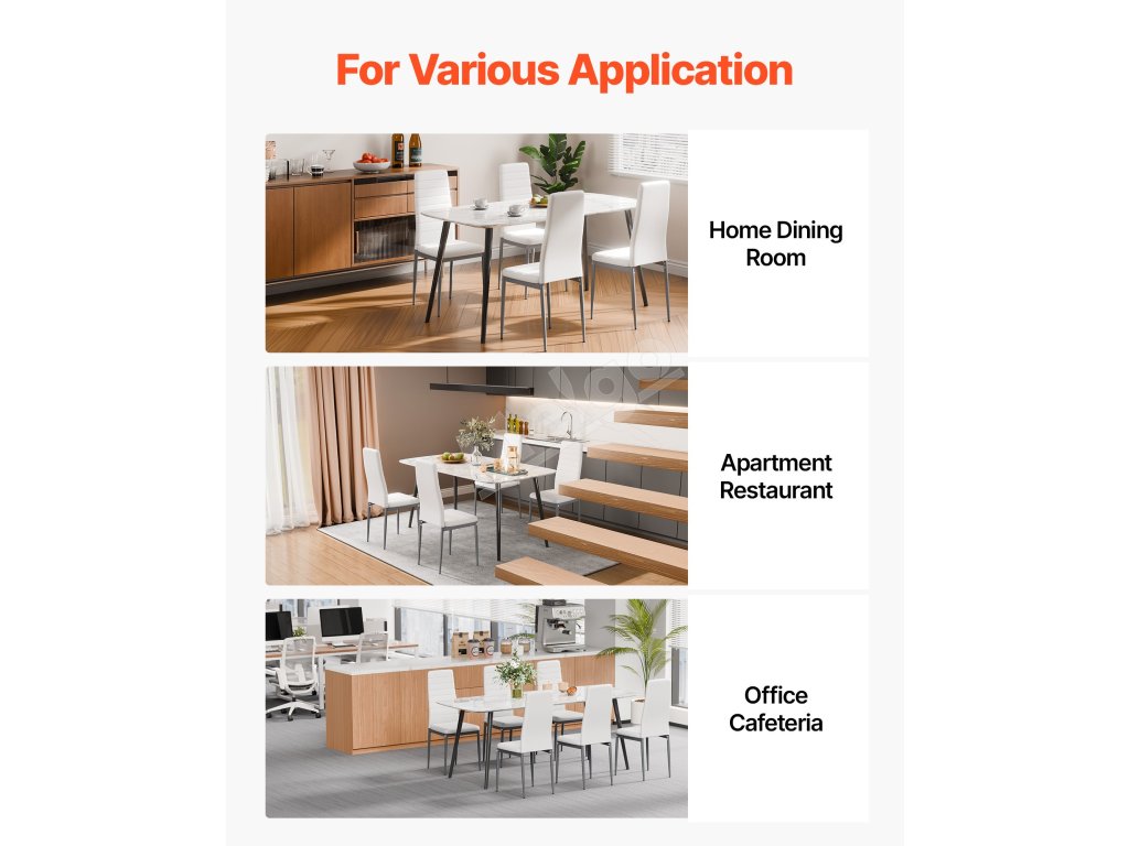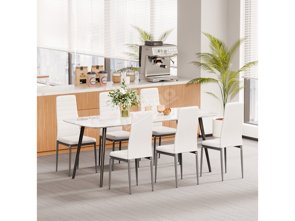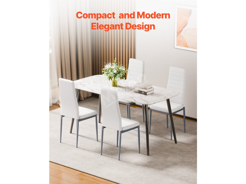 Sada 4 čalúnených jedálenských stoličiek, koženka, kovové nohy, biela