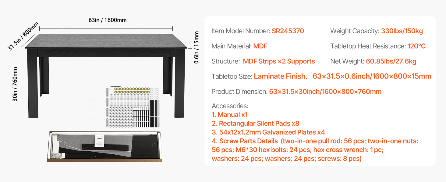 Obdĺžnikový jedálenský stôl 63 inch, pre 4–6 os., nosnosť 330LBS