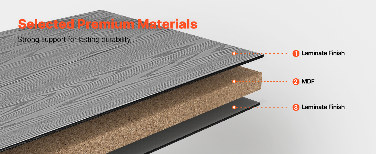 Kuchynský stôl s vysokou odolnosťou využíva materiál MDF s laminátovou povrchovou úpravou, ktorý zabezpečuje konštrukčnú stabilitu a odolnosť proti praskaniu, zatiaľ čo hladký povrch uľahčuje čistenie. Tento stôl zaručuje dlhodobý výkon pri zachovaní elegantného a upraveného vzhľadu.