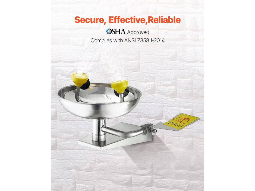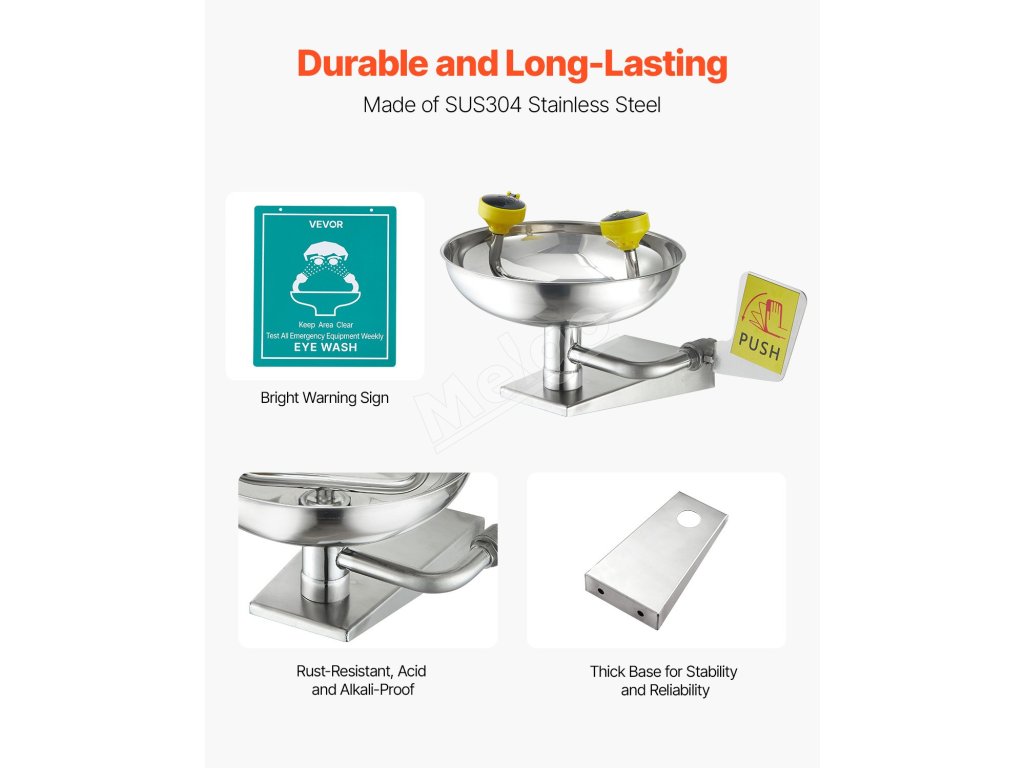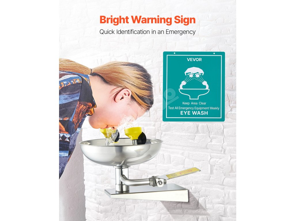 Táto stanica na umývanie očí je vyrobená z nehrdzavejúcej ocele 304 s povrchovou úpravou ABS pre dlhú životnosť. Spĺňa normy OSHA a ANSI Z358.1-2014 s prietokom 12 l - 18 l/min. Aktivuje sa do 1 sekundy pomocou ručne stláčanej dosky a má zelený vzhľad na rýchlu identifikáciu, ideálny do laboratória, továrne a školy.