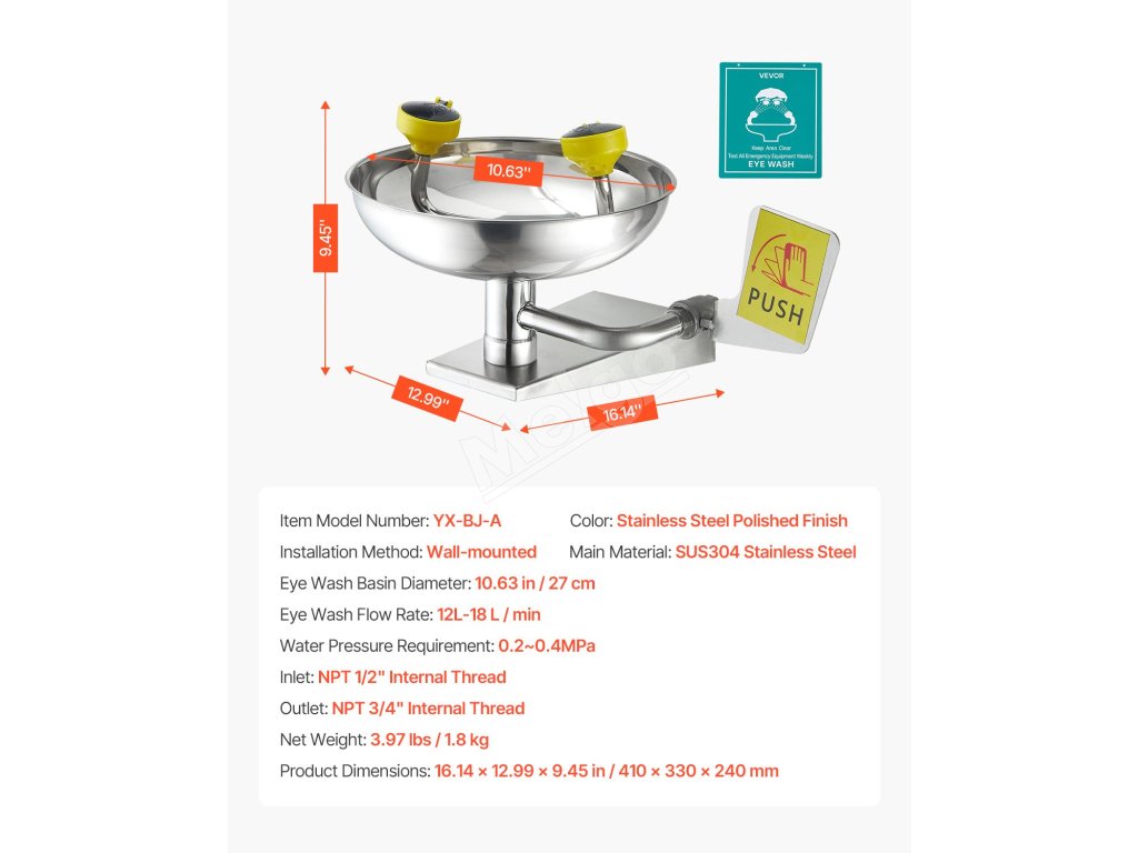 | Priemer umývadla na umývanie očí | 10.63 palcov / 27 cm |