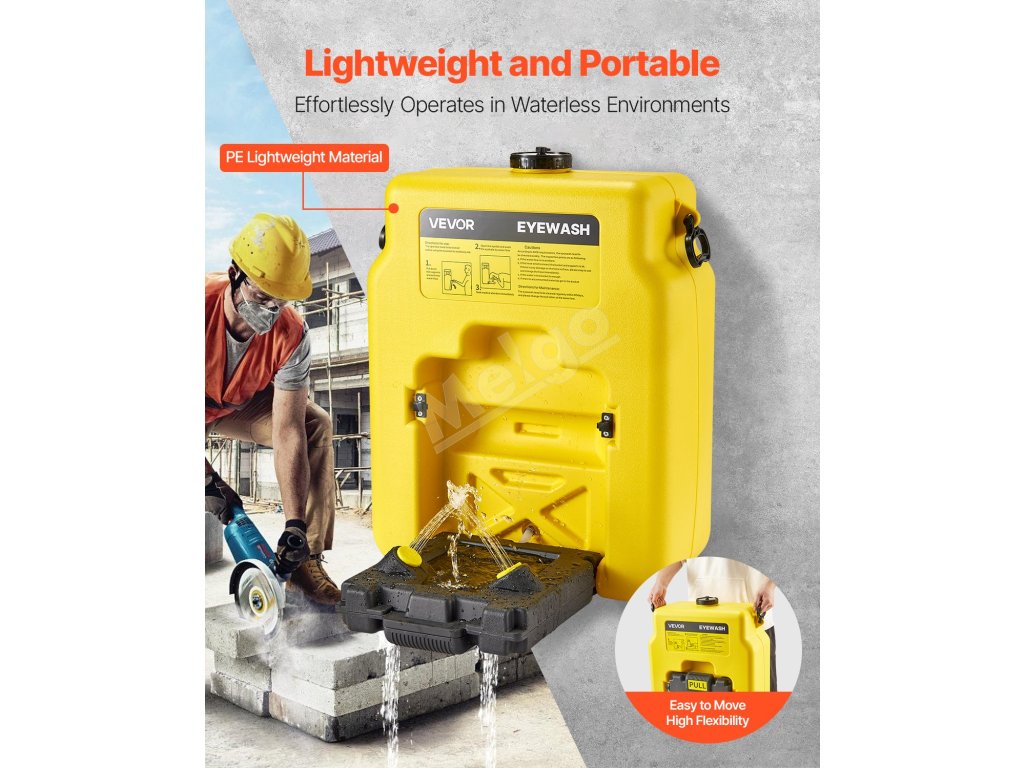 Táto stanica na výplach očí prvej pomoci sa vyznačuje kompaktnou a ľahkou konštrukciou, vďaka ktorej sa ľahko prenáša a je veľmi flexibilná. V prípade núdze ju možno rýchlo premiestniť na rôzne miesta podľa potreby.