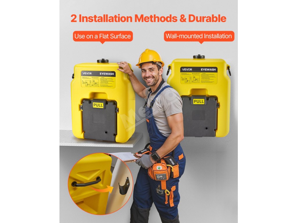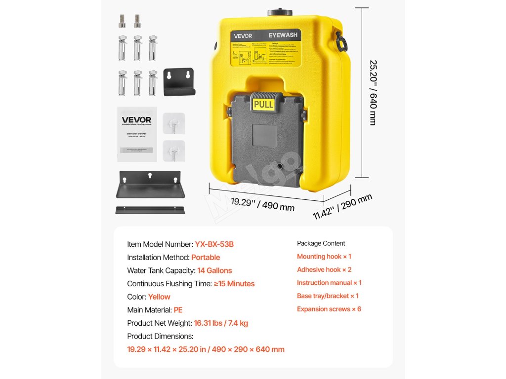 Prenosná núdzová očná stanica 53 l/14 gal, nástenná, 2 trysky, žltá