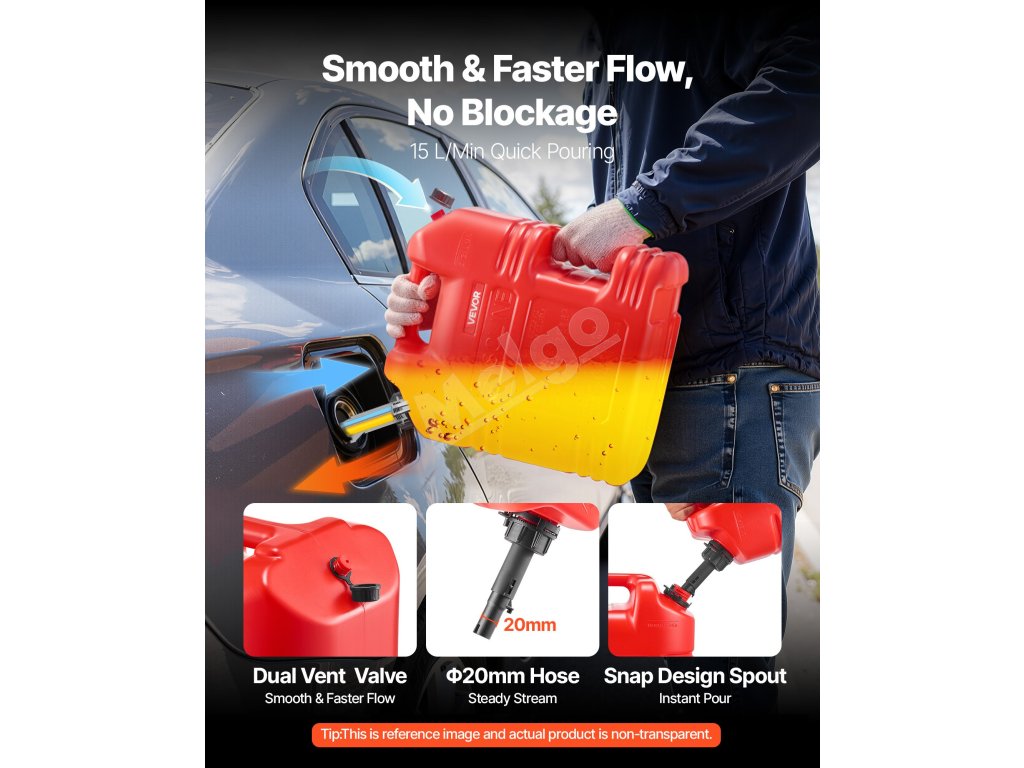 Táto prenosná nádoba na palivo je vyrobená z hrubého HDPE s 2 mm stenami pre pevnosť a odolnosť. Je vybavená nepriepustným uzáverom a výtokovou hubicou z PP na plynulé nalievanie 15 l/min. Je ideálna na autá, motocykle, výlety v teréne a použitie v prírode.