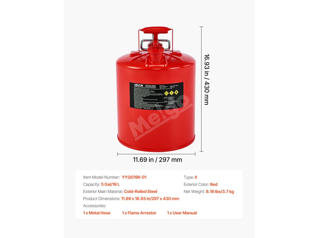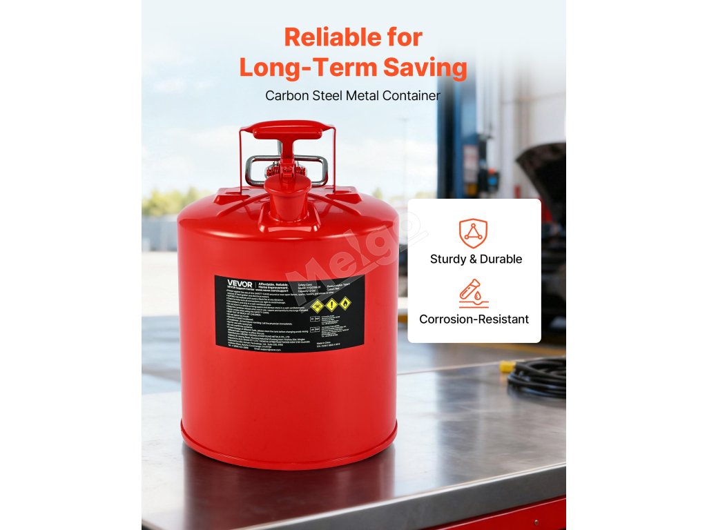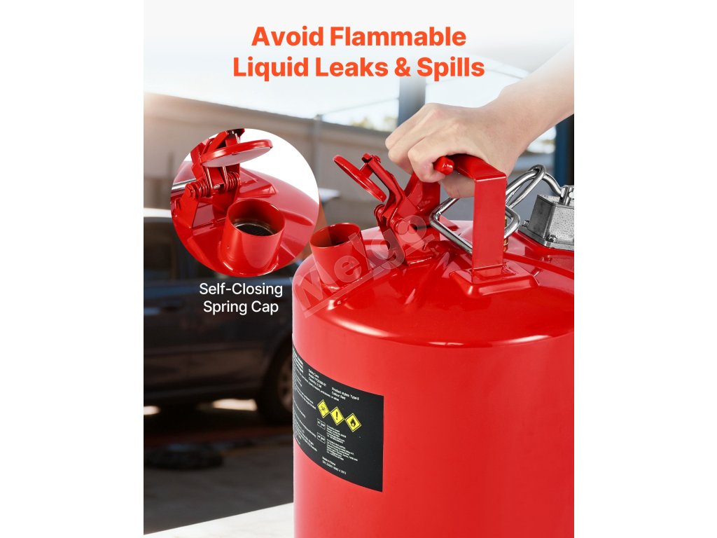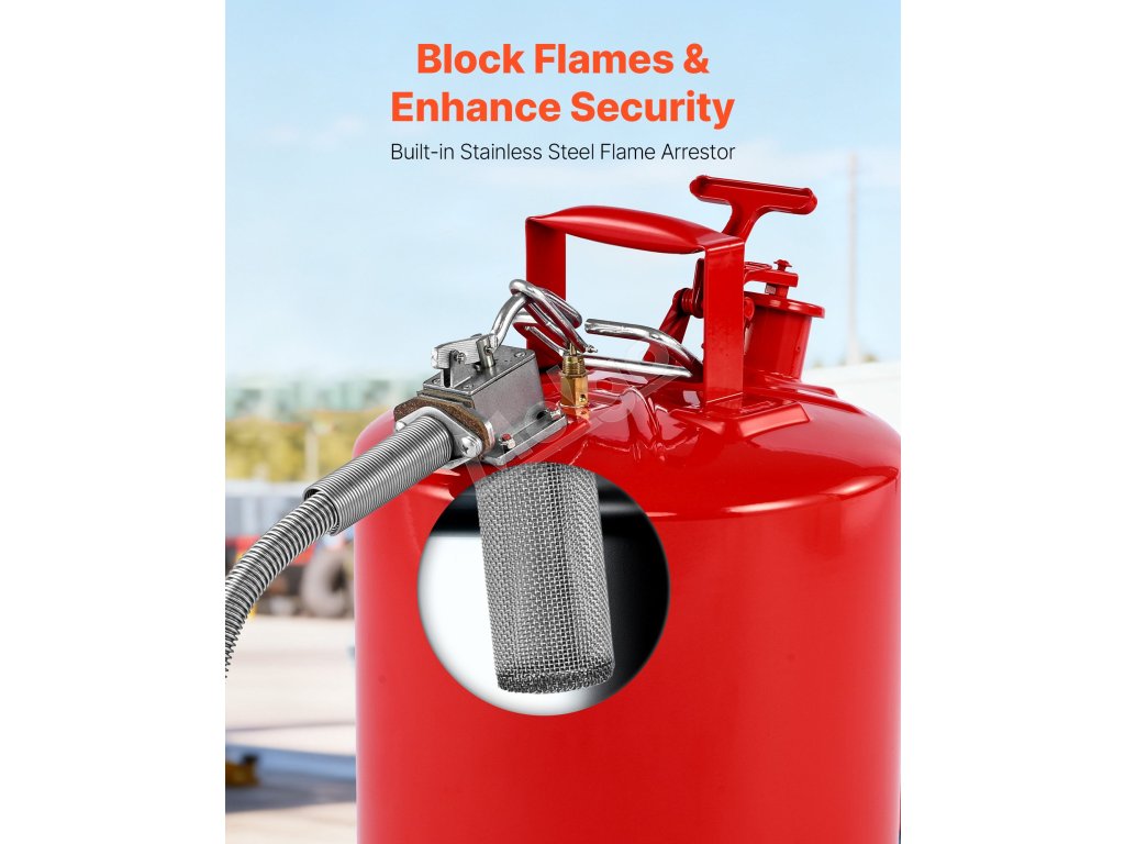 Vďaka robustnému telu z uhlíkovej ocele odolnej voči korózii s poistkou proti vznieteniu SUS304 náš kovový kanister na plyn blokuje vonkajšie plamene a zabraňuje náhodnému vznieteniu kvapalín. Jej lievik s hadicou SUS304 odolnou proti striekajúcej vode a konštrukcia so širokým hrdlom zabezpečujú plynulé plnenie a nalievanie, čím zabraňujú rozstrekovaniu kvapaliny.