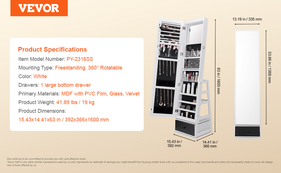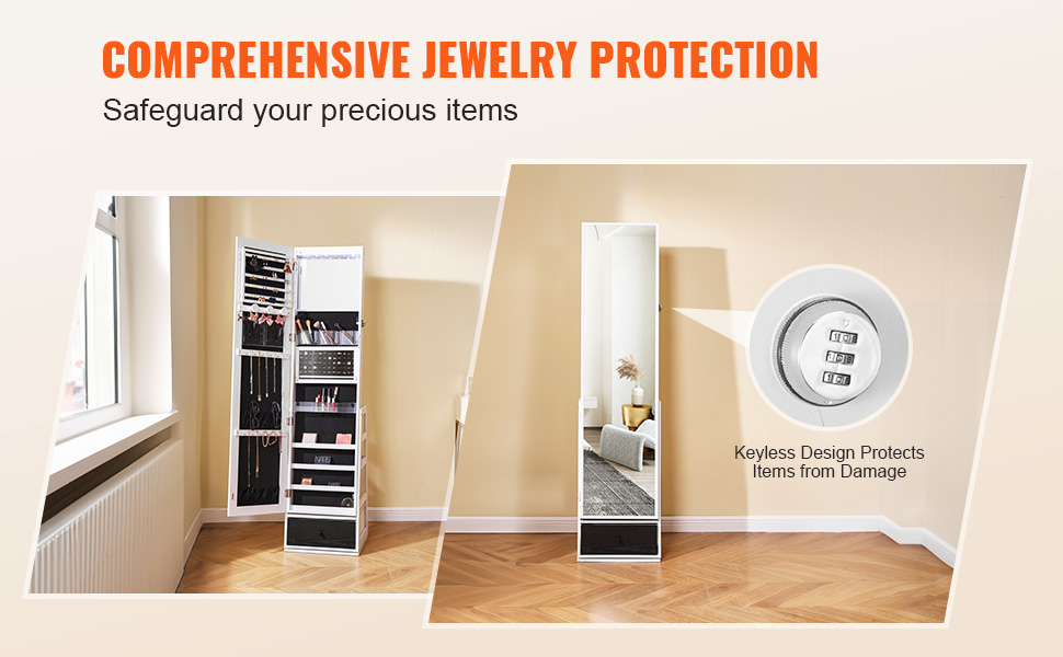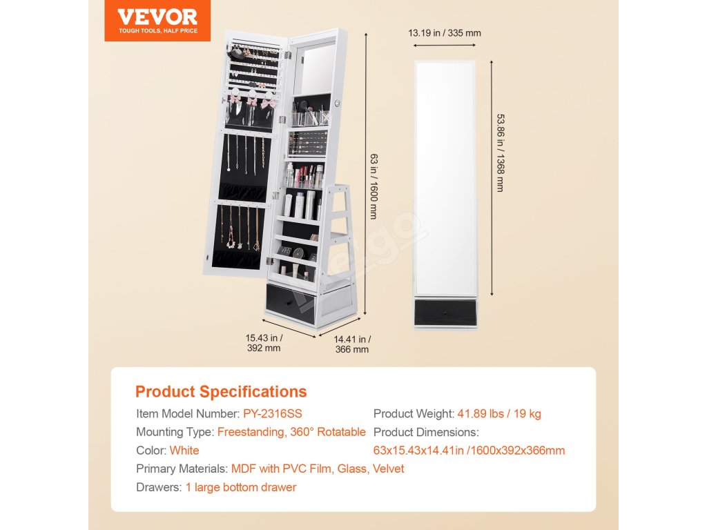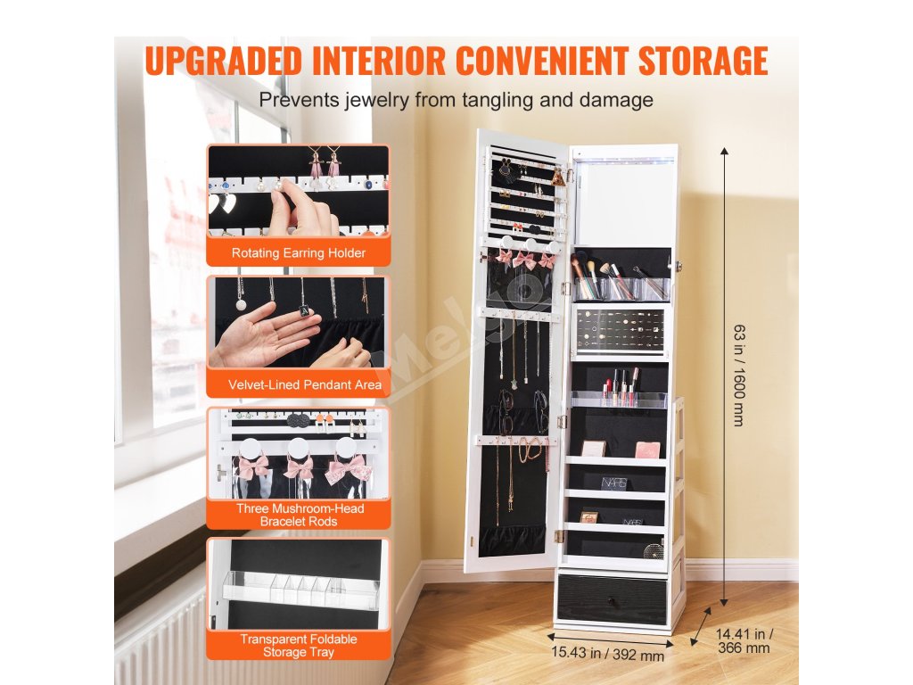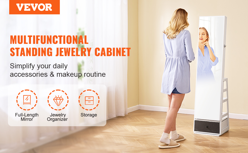 VEVOR Stojaca zrkadlová skrinka na šperky: Organizácia šperkov bez námahy