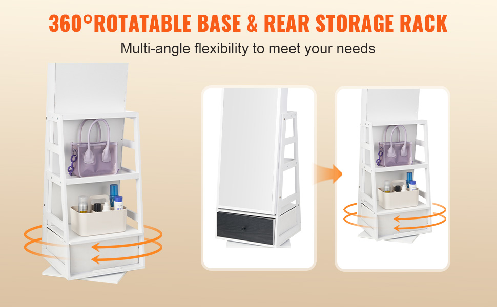 Toto stojace zrkadlo s úložným priestorom kombinuje organizér šperkov, zrkadlo po celej dĺžke, zrkadlo na líčenie a zadnú odkladaciu poličku, čím poskytuje čistý a priestranný priestor pre všetky vaše potreby.