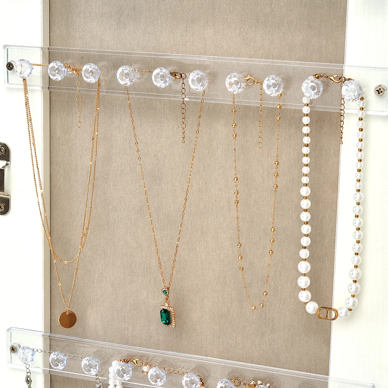 Zrkadlo na šperky obsahuje háčiky na náhrdelníky, vďaka ktorým budú vaše náhrdelníky prehľadne vystavené a nezamotané.