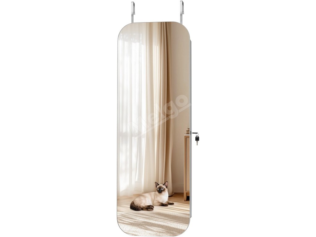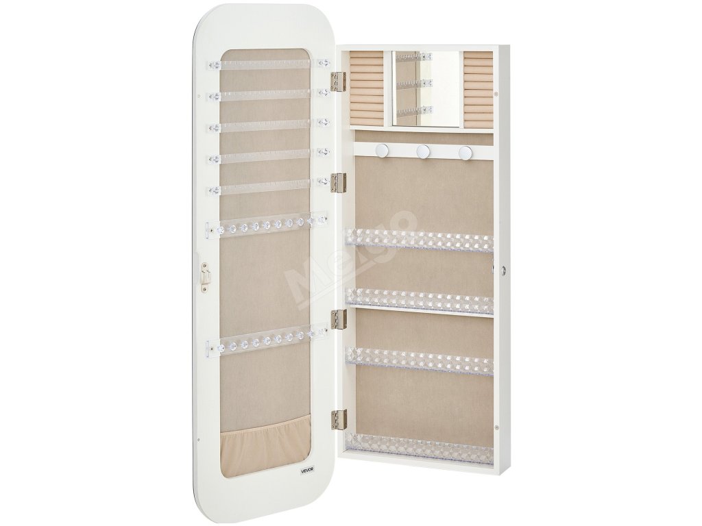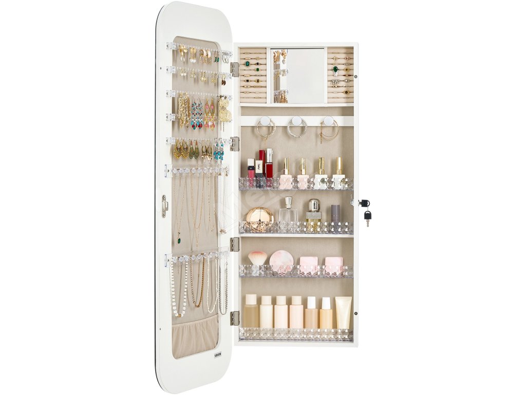 Zrkadlová skrinka na šperky 1080 mm vysoká biela, zamykateľná