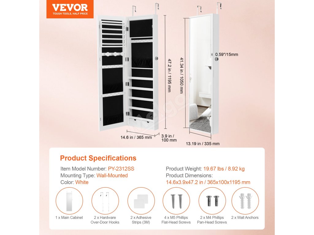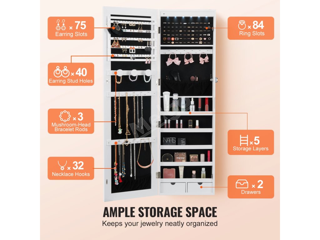 Zrkadlová skrinka na šperky VEVOR: Organizácia šperkov bez námahy