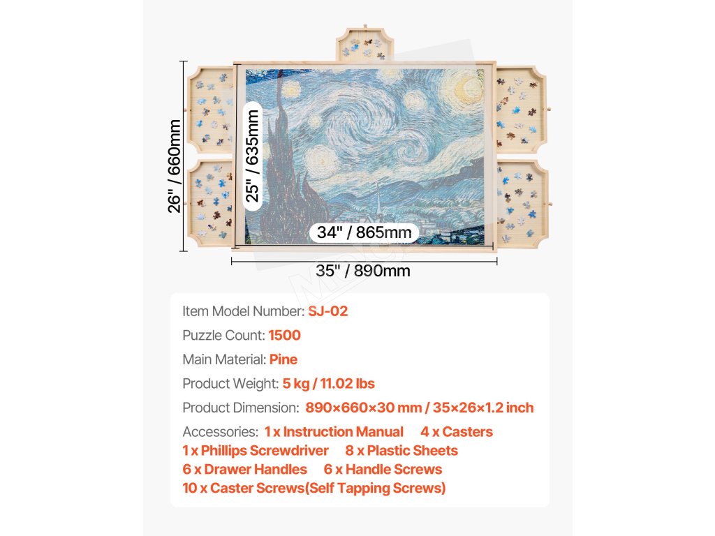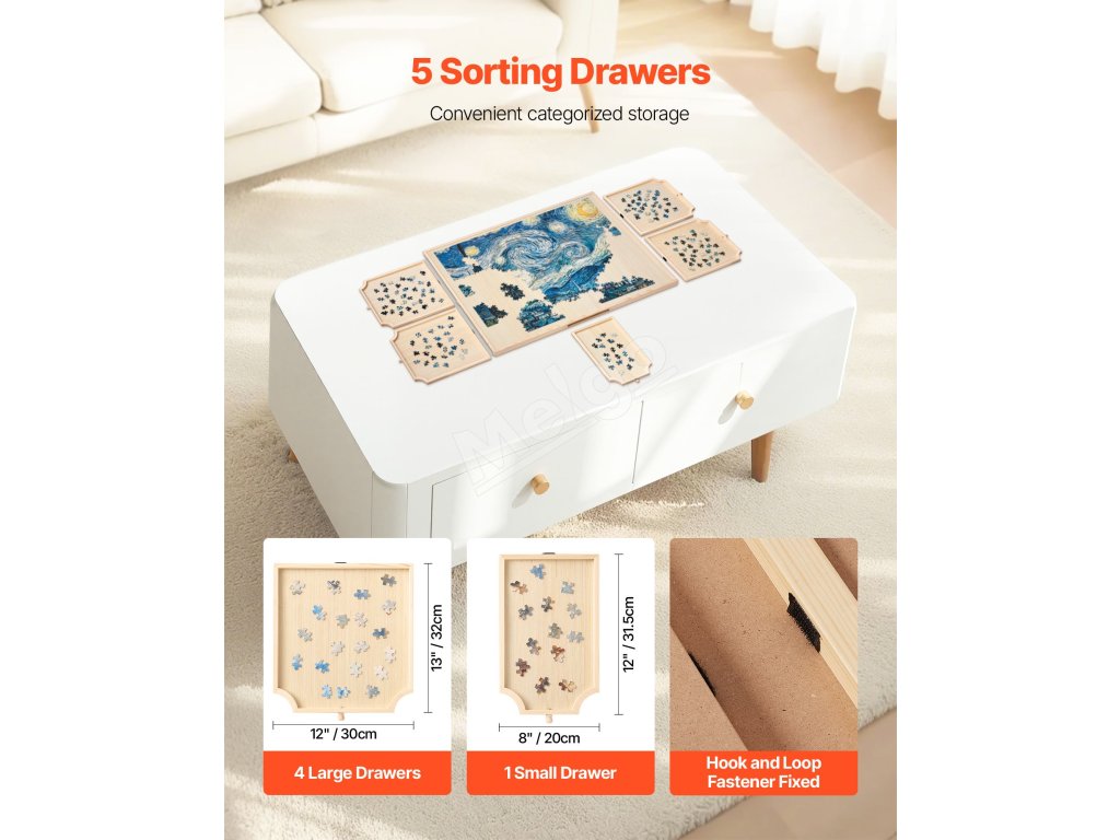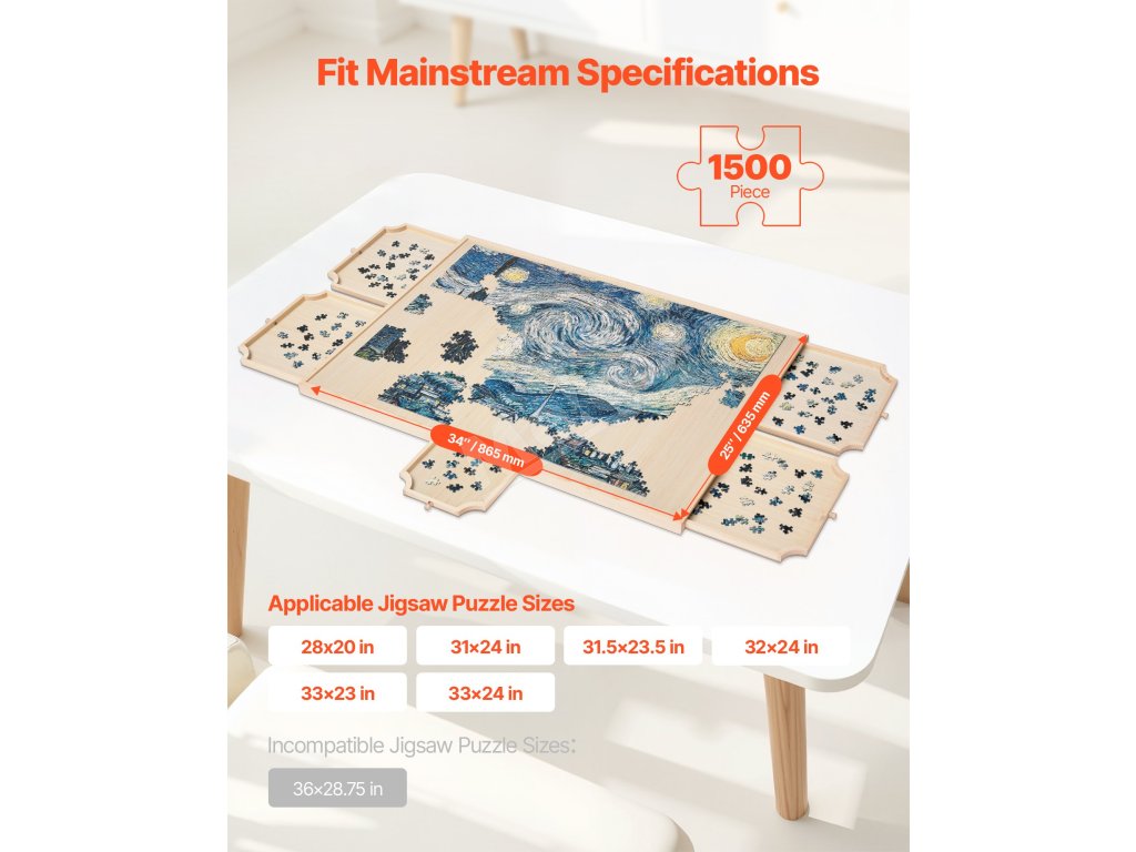 Naše dosky na puzzle so zásuvkami a krytmi majú rozmery na väčšinu 1500-dielnych puzzle a ponúkajú jednoduchý a efektívny spôsob vytvárania krásnych puzzle.