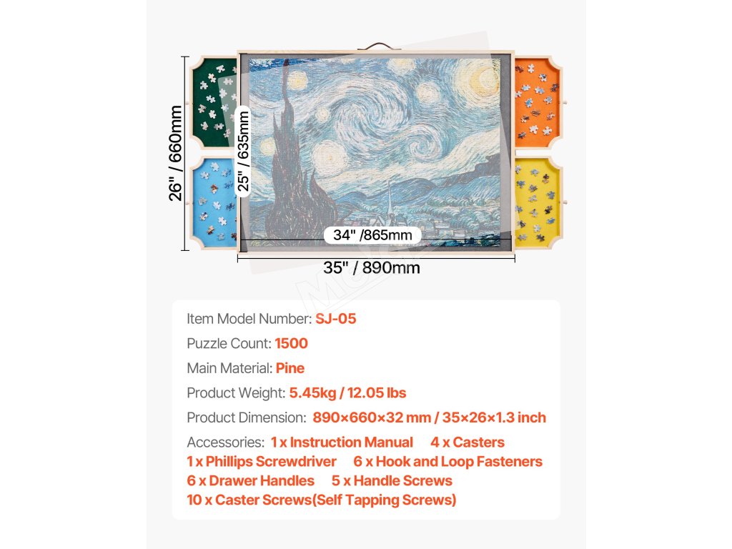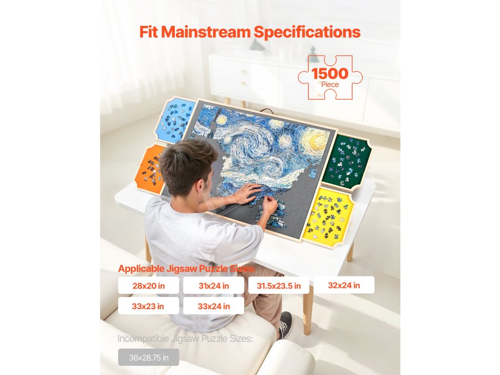 Naše dosky na puzzle so zásuvkami a krytmi majú rozmery na väčšinu 1500-dielnych puzzle a ponúkajú jednoduchý a efektívny spôsob vytvárania krásnych puzzle.