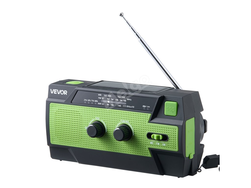 Núdzové rádio 4000mAh fm/am/wb/noaa, solárne, kľuka, usb, sos svetlo