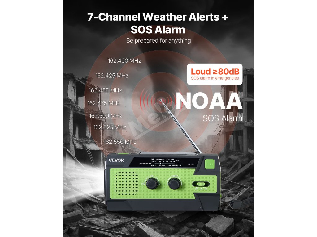 Toto ručné kľukové núdzové rádio sa automaticky zameriava na kanály NOAA s jasným príjmom zeleného svetla a výstražnými indikátormi žltého svetla. Buďte pripravení na hurikány, tornáda, cunami, záplavy a iné extrémne podmienky vďaka včasným výstrahám ešte pred ich úderom.