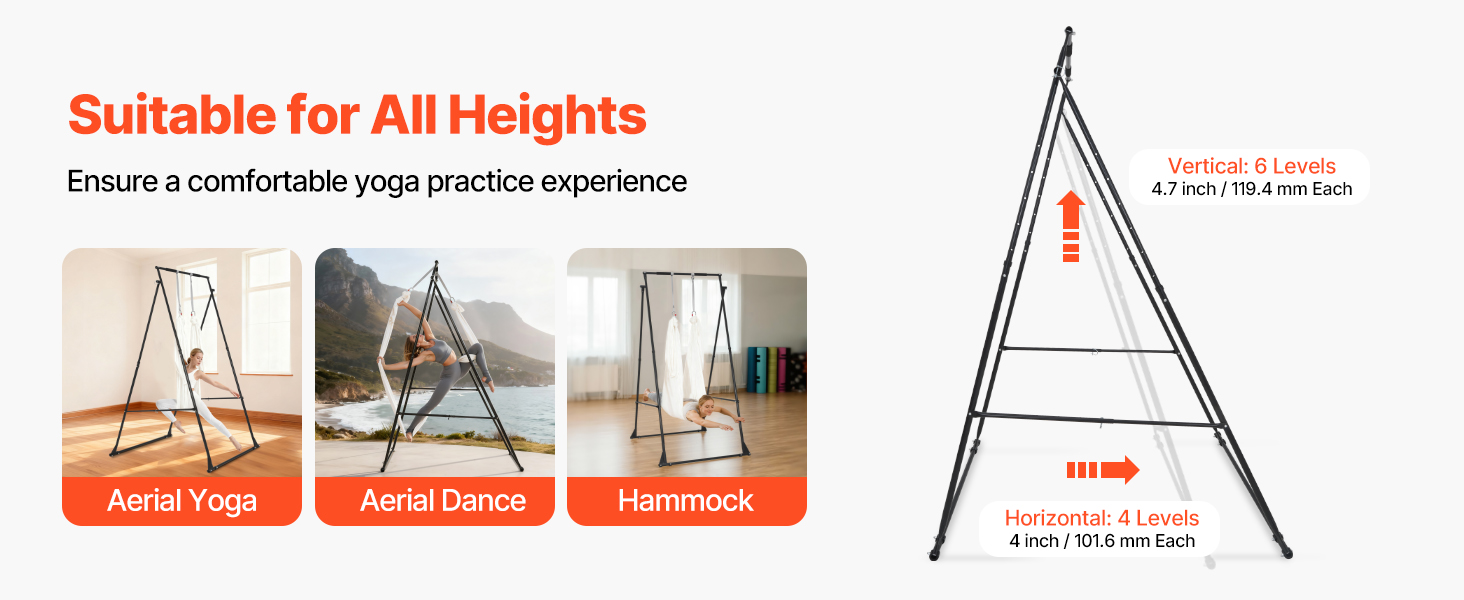 Tento stojan na vzdušné hodvábne šatky má trojuholníkový rám, ktorý zaisťuje stabilné cvičenie. Rozloženie hmotnosti a protišmykové nožičky minimalizujú kolísanie, čo vyhovuje ako začiatočníkom, tak aj skúseným cvičencov. Sústreďte sa na každú pozíciu s istotou a užite si plynulé a vyvážené jogové cvičenia zakaždým.