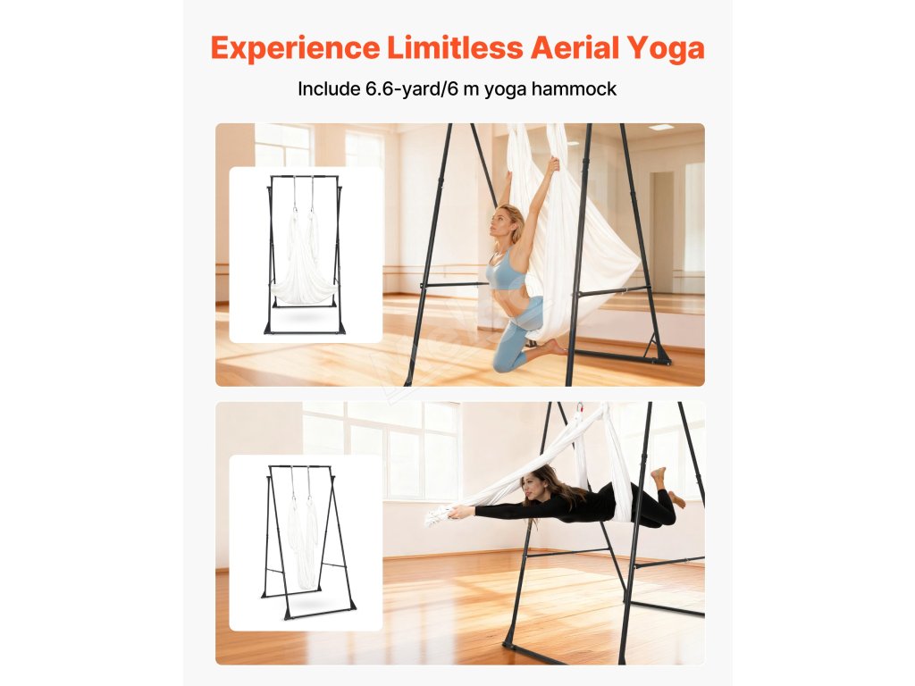 Zažite novú úroveň pohodlia s týmto stojanom na vzdušnú jógu s širokým, otvoreným dizajnom. Veľkorysý priestor podporuje úplné strečingové a zložité pozície, vďaka čomu je ideálny pre akúkoľvek úroveň zručností. Jeho usporiadanie uprednostňuje flexibilitu a ľahkosť, čo umožňuje cvičiacim voľný pohyb pri každom pohybe.