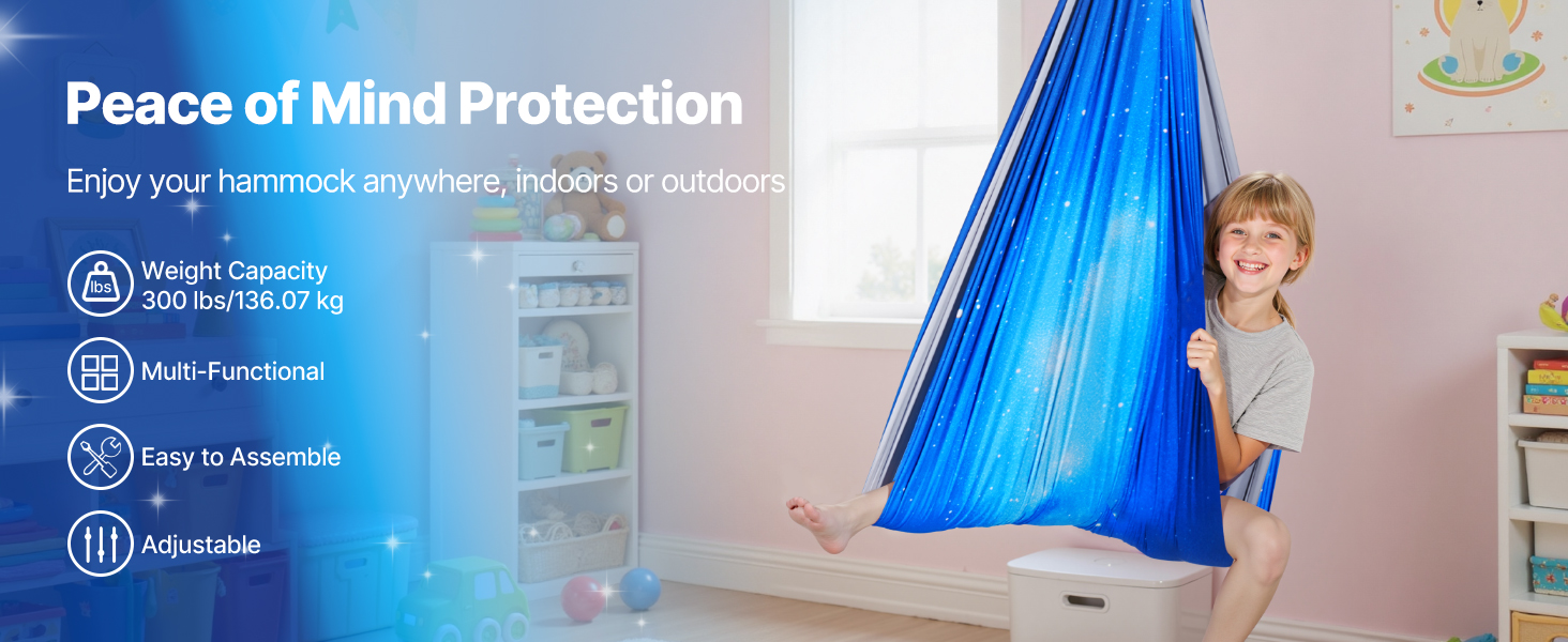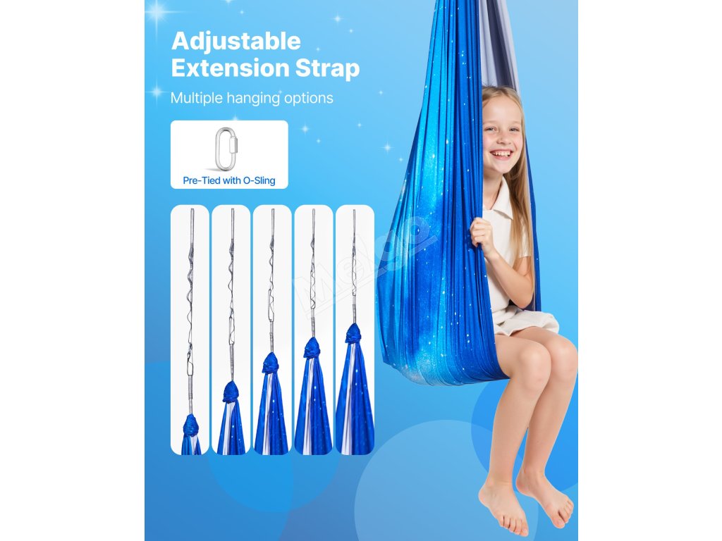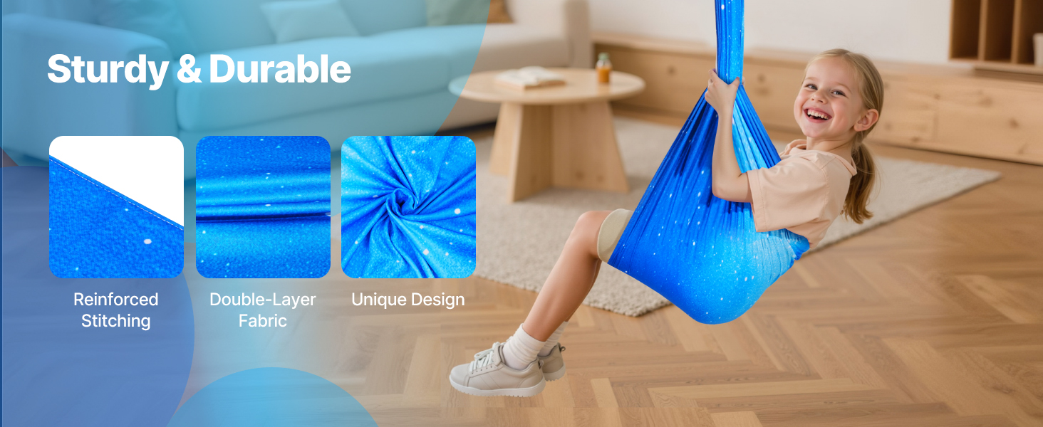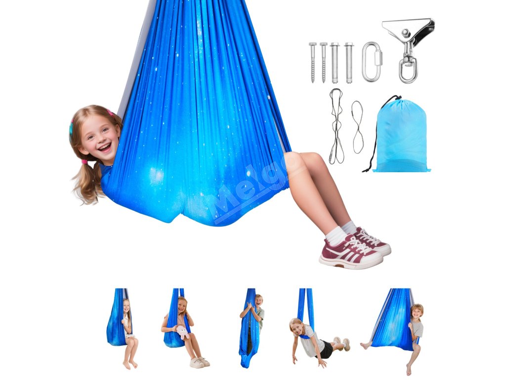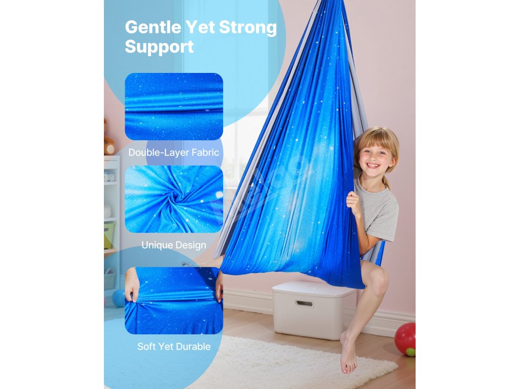 Zahaľte svoje dieťa do pohodlia s touto terapeutickou hojdacou sieťou vyrobenou z mäkkej, elastickej spandexovej tkaniny. Dvojvrstvová konštrukcia zvyšuje odolnosť pri zachovaní jemného dotyku. Táto vzdušná hojdacia sieť, ktorú možno pre väčšie pohodlie prať v práčke, poskytuje trvalé pohodlie a stabilitu pri každom sedení.