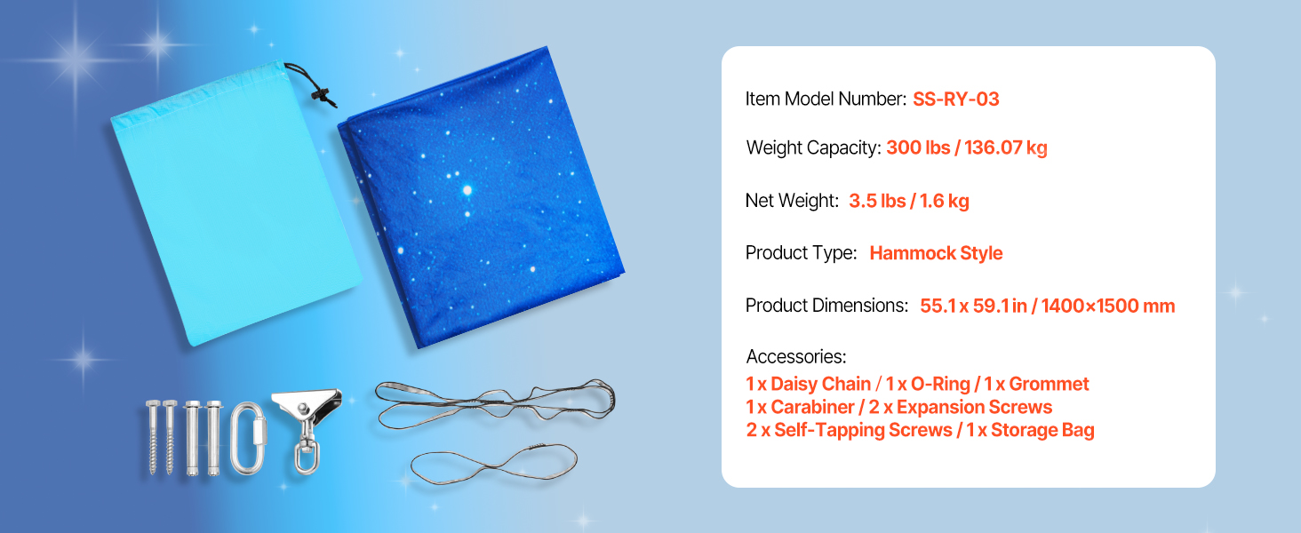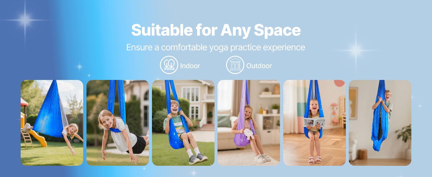 Odolné oceľové karabíny a reťaze udržia až 300 lbs/136,07 kg, čo vám umožní natiahnuť sa a pohybovať bez obmedzení. Priestranné rozloženie vyhovuje všetkým používateľom, kladie dôraz na pohodlie a plynulý pohyb. Vychutnajte si každú pozíciu a prechod s hojdacou sieťou v interiéri pre osviežujúci tok jogy.