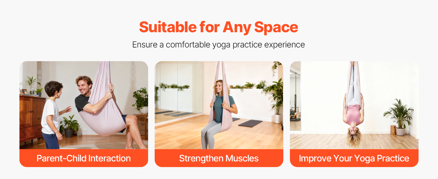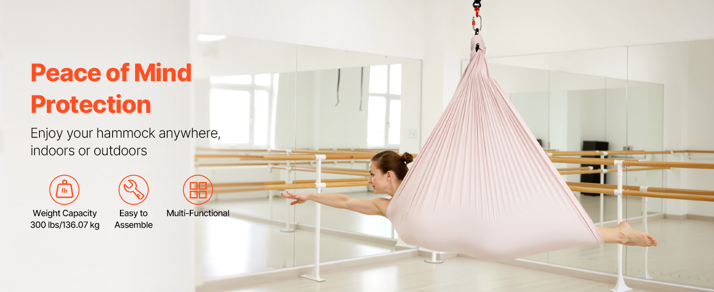 Naša súprava na vzdušnú pilatesovú hodvábnu jogovú hojdačku pre domácnosť, vybavená všetkým potrebným hardvérom, ako sú oceľové karabíny a reťaze, umožňuje rýchle prechody medzi režimami hojdačky a hojdania. Bez námahy si prispôsobíte priestor a štýl a ponúknete bohatší a pútavejší zážitok zo vzdušnej jogy pre každého cvičenca.
