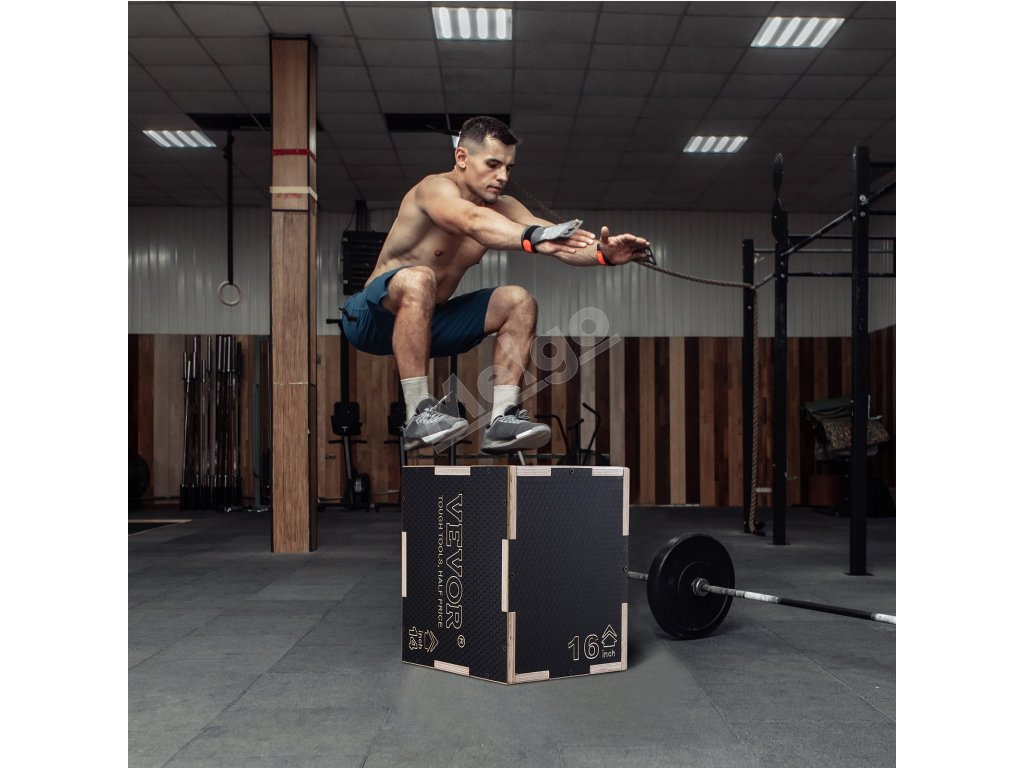 Drevená plyometrická bedňa 3v1 16/14/12 inch protišmyková plošina