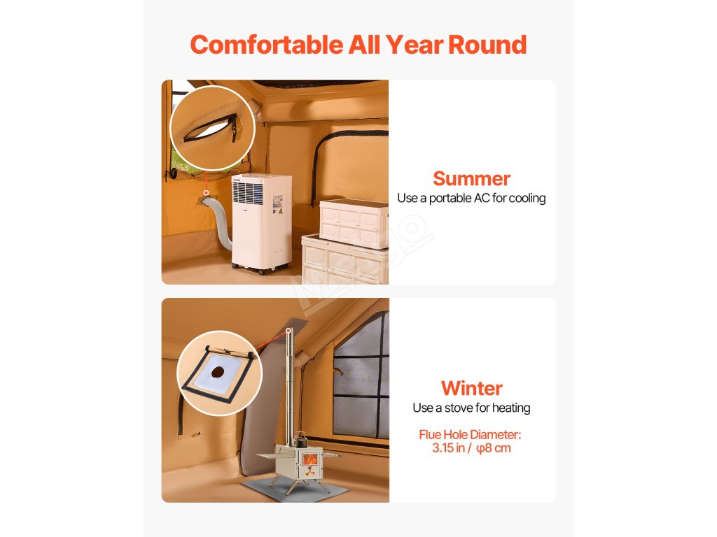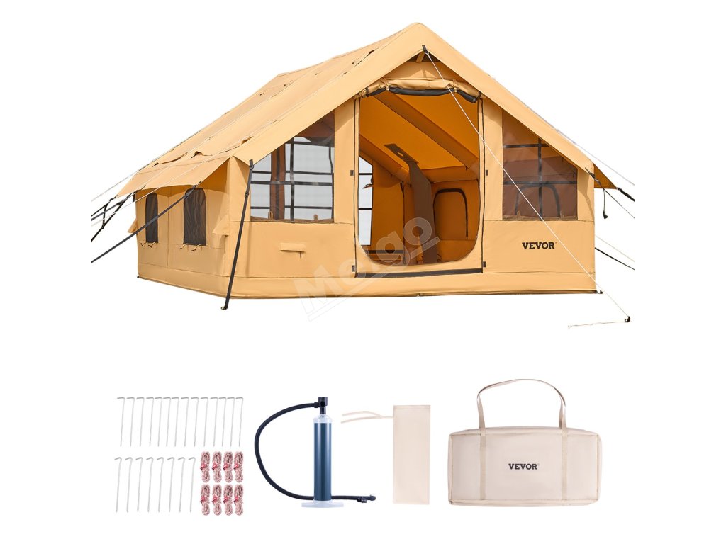 Nafukovací stan pre 5–8 osôb, pumpou, 2 strešné okná, otvor na sporák